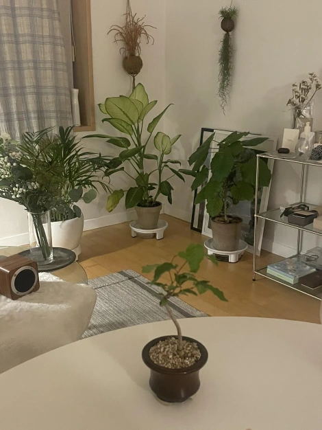 넓은 자취방으로 이사하고 나서 식물을 키우는 재미에 빠졌다. 관련해서 유튜브 영상도 올렸었는데, 마침 코로나로 홈인테리어 수요가 증가하던 시기라 조회수가 터진 적이 있다. 어쨌든, 처음에는 기분전환용으로 하나 샀다가 볼수록 기분 좋기도 하고, 집안 분위기를 화사하게 해주는 맛도 있어 점점 늘려간다는 게 13개. 시행착오 끝에 지금은 7개 남았다. 뭐야 나 6개나 보냈네... 주륵 (미..안)