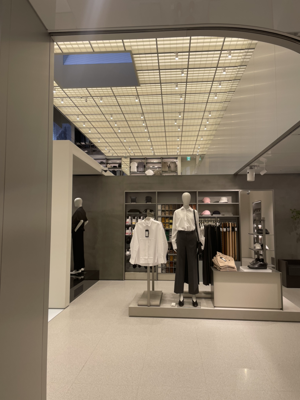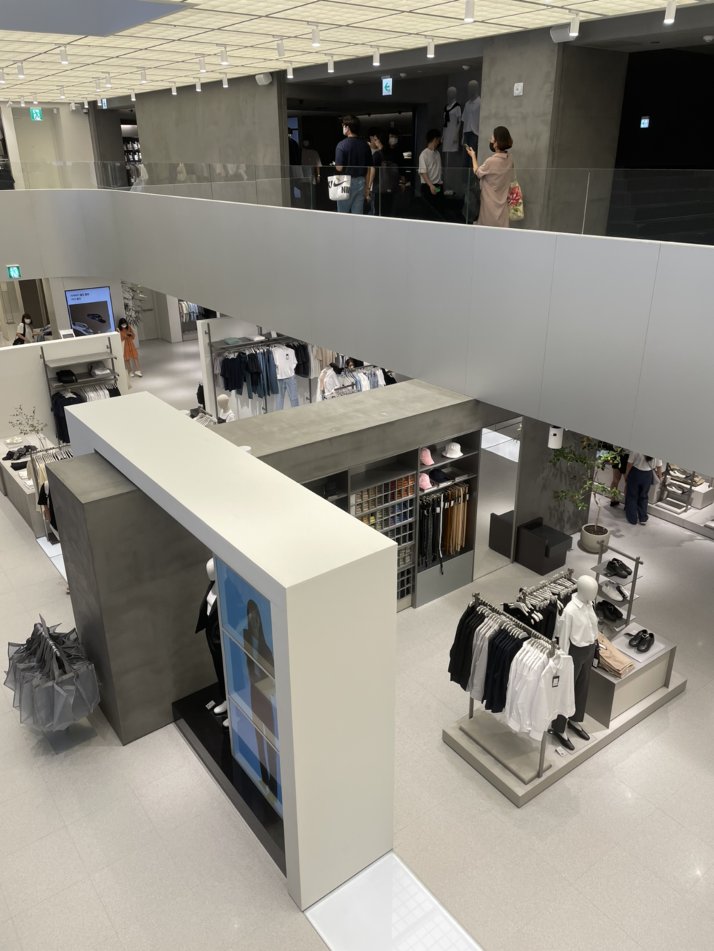 문득 1층에 들어서자마자 느낀 건 '자라(ZARA) 매장 분위기와 매우 흡사한데, 더 심플하고 캐주얼한 버전' 이었다. 자라가 '캐주얼하지만 독특한 개성을 살린 웨어'를 추구한다면, 무신사 스탠다드는 정말 '기본에 충실한 미니멀 웨어'를 추구하는 듯 했다.
