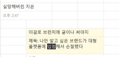 최근, 친구랑 둘이서만 속닥거렸던 우리의 최애 브랜드가 대형 플랫폼에 입점한다는 소식에 실망이 컸다. 심지어 유명 모델이 광고도 한대서 더 절망적이었다. 어쩌면 브랜드가 커가는 과정에서 당연한 수순이거늘, 그들의 확장과 성공을 축하해주면 좋을텐데. 팔로워수가 늘고 인기가 어느 정도 차면 결국 대형 플랫폼으로 입점해 나아가는 브랜드들의 행보가 왜 난 달갑지 않을까.