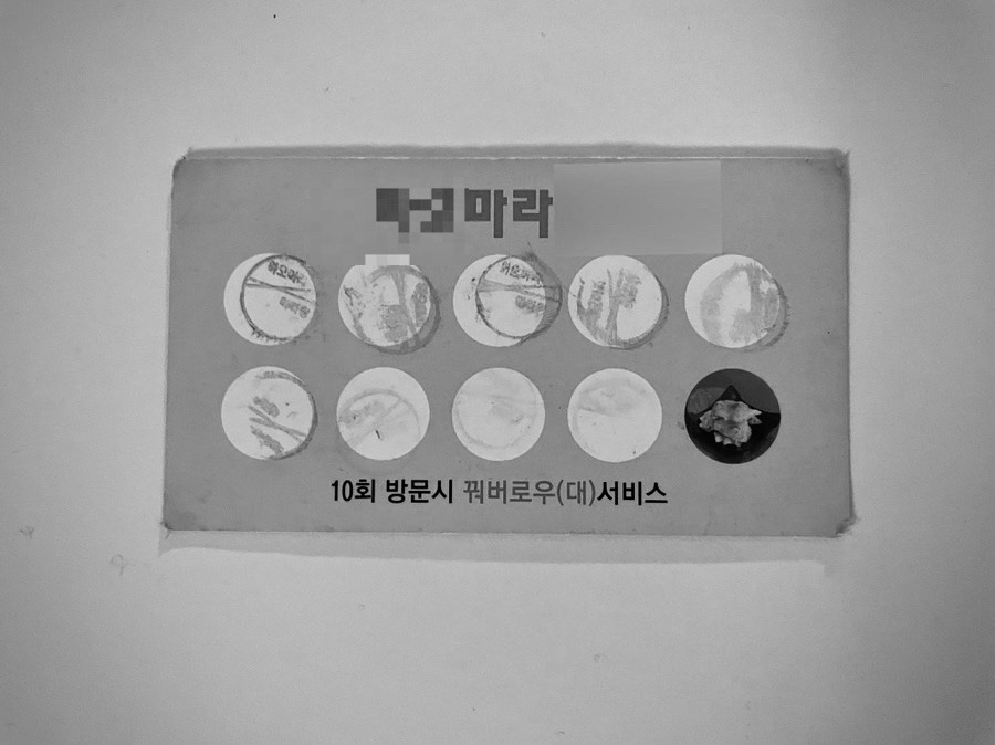 얼마전 오랜만에 방문해서 여느때처럼 마라샹궈를 주문하고나서, 하나 남은 도장을 찍어달라고 내밀었는데 이제 이 쿠폰은 소용이 없다고 하는 거예요! (청천벽력... 딱 10번째 방문인데! 마지막 도장인데!)