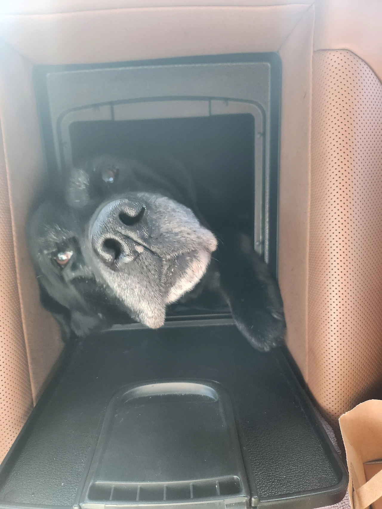 트렁크에 누워서 머리만 밖으로 빼고 가족들과의 시간을 보낸다