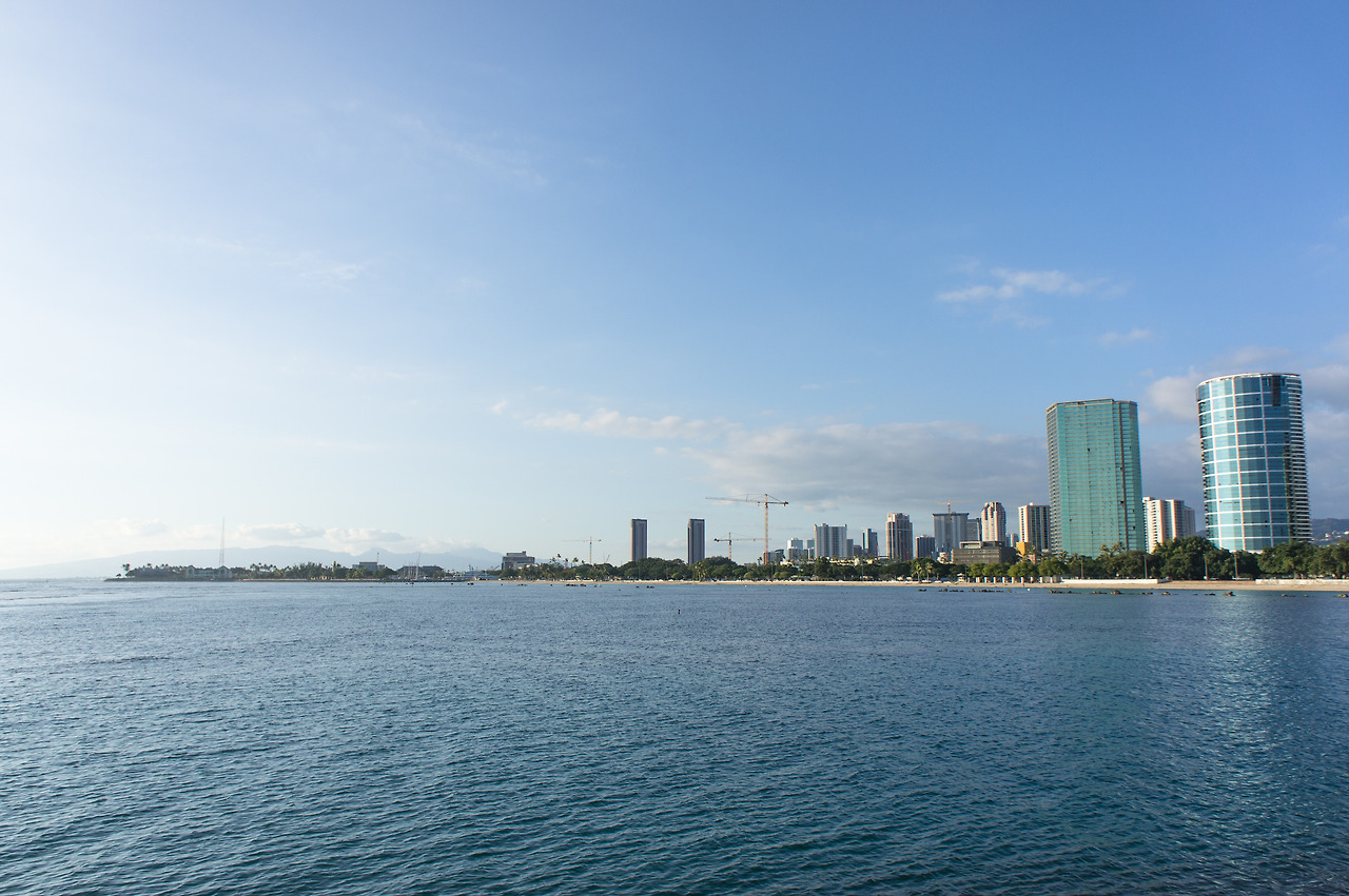 H는 공원을 가로질러 곧장 바다를 향해 걸어갔다. 마치 바다가 H를 부르고 있는 것 같았다. 바다가 보이는 의자까지 곧장 걸어가더니, 의자에 앉아서 바다를 바라보기 시작했다. 바다를 바라보던 H가 살짝 넋이 나간 사람처럼 말했다. 이게 하와이 바다구나. 바다는 깊고, 푸르고, 평화로웠다. 바다는 끝없이 확장되는 듯하다가 건너편의 건물들 속으로 수렴되고 있었다. 긴 수평선이 짧은 수직선으로 바뀌는 순간이었다. 맞은편에 보이는 그 건물들은 도시의 냄새를 잔뜩 풍기면서 존재감을 뽐내고 있었다. 그 많은 건물들의 숲 중에서, 이제 막 지어지기 시작한 건물 하나가 바다 건너 우리에게까지 소리치기 시작한다. 네가 앉아 있는 거기가 바로 호놀룰루라고. 너는 지금 하와이에 있는 거라고.