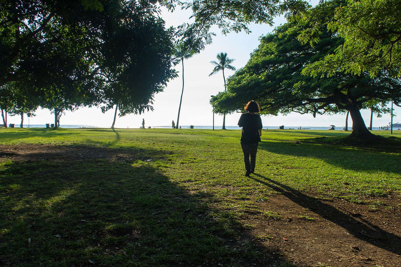 다음날 오후 점심을 먹자마자, 알라모아나 공원을 향해 걸었다. 알라모아나 공원은 작은 공원이 아니었다. 동네의 자그마한 공원 정도를 상상했던 나는 알라모아나 공원 안을 걸으면서, 우습게도 알라모아나 공원을 찾고 있었다. 저 안 어딘가에 내가 찾는 공원이 있을 거라고 착각하고 있었던 것이다. 지친 발걸음도 쉬어갈 겸 거대한 나무들의 그늘 아래 숨는 순간, 나무들이 속삭이기 시작했다. 바보야. 너는 지금 알라모아나 공원 안에 있어.