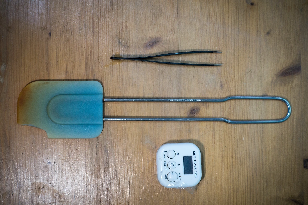 제 기능을 못하는 핀셋, 앞부분이 파손된 실리콘 주걱 , 그리고 고장 난 타이머가 오늘의 주인공입니다.