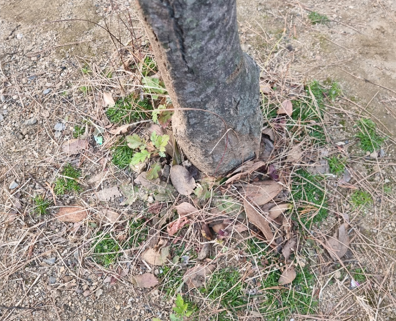 12월 15일 수요일 나무 둥치 아래에 동그랗게 모여 있는 푸른 잎들이 보인다. 이름을 다 알아내서 불러주고 싶지만 아직은 이름 모를 잡초라고 불러야겠구나. 마른 잔디 아래에 짙은 초록색에 뾰족뾰족한 풀들이 빼곡하게 자라는 것이 보인다. 국화 잎과 닮은 풀도 자라고 있다. 겨울에도 푸릇푸릇. 한파가 온다는데 얼지 않으려나.