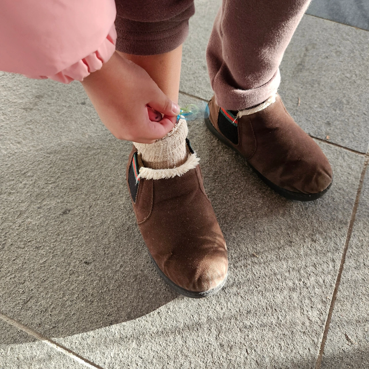 고무줄 주워서 양말 안에 넣어옴