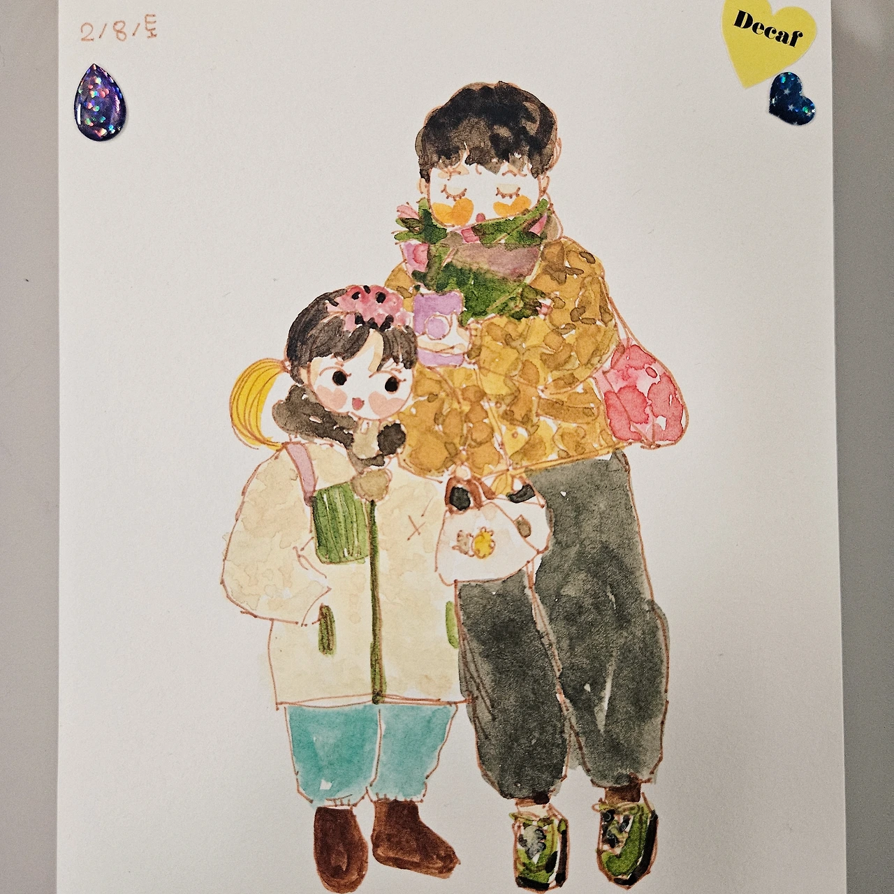 눈이 펑펑 내리는 날, 초등학교 행정실에 갔다가 동네 마실도 다녀왔다. 커피와 빵과 샐러드가 모두 맛있었다. 데일리 친구에게 김치를 나누어주고 오후에는 여름의 태권도 학원 체험이 있었다. 부끄럽다며 몸을 배배 꼬다가 눈물을 흘리고, 엄마들 사이에 앉아서 수업 구경을 끝까지 하는 아이를 보면 답답하다가도 우습다. 어릴 때 찍은 사진들 속 늘 삐치거나 심통이 나 있는 내 모습과 똑같아서.