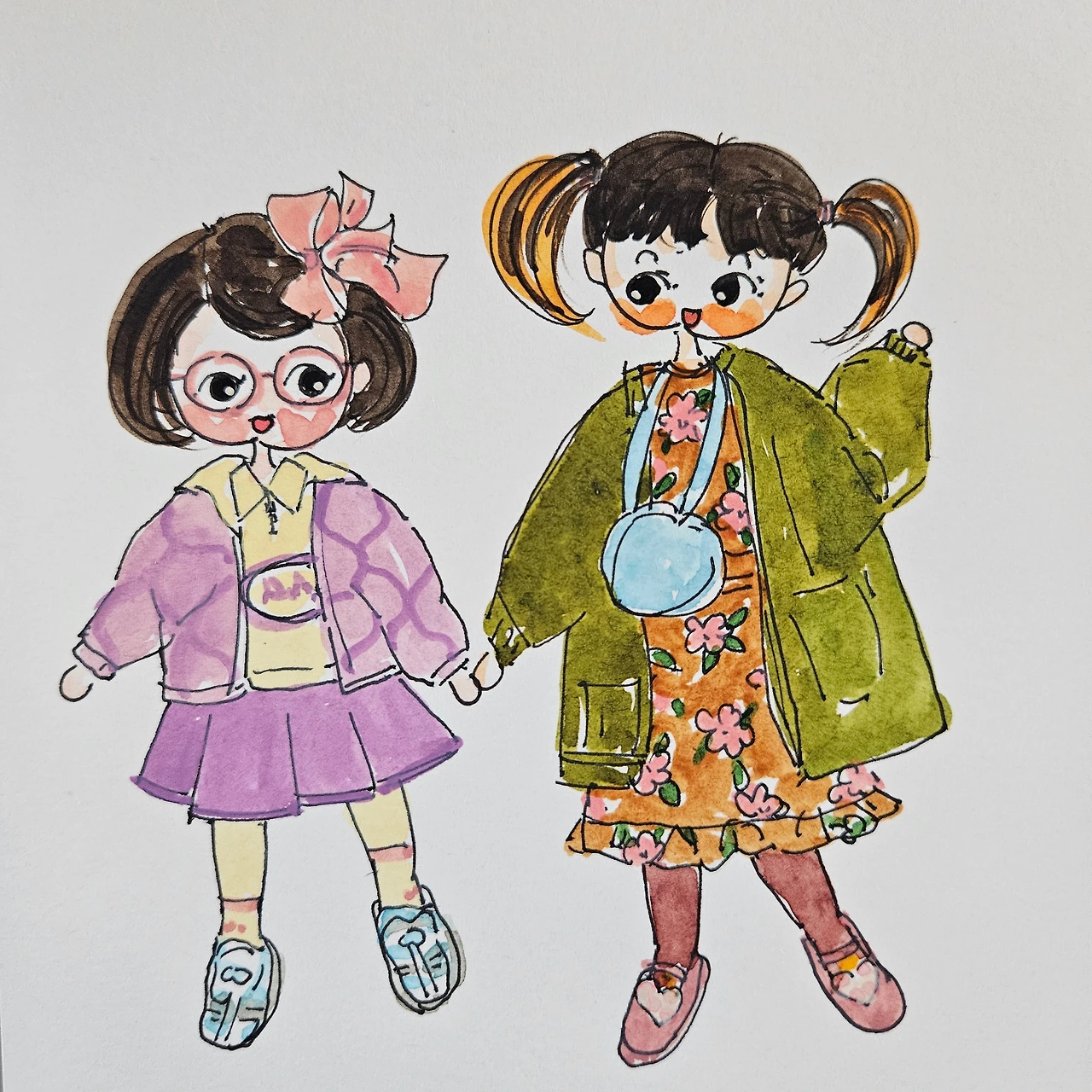 여름의 친한 친구 윤이. 유치원 7살 때 만나 단짝이 되었다. 유치원에서 가져온 활동지마다 서로의 이름이 써 있다는 학기가 마칠 겨울쯤에나 알았다. 얼마나 좋아하는지, 하루 종일 놀아도 다음날 또 만나고 싶어 한다. 화요일에는 계단 위 우리 동네 놀이터에서 놀고 수요일에는 계단 아래 윤이네 놀이터에서 놀았다. 둘이 미끄럼틀과 운동기구 사이를 오가며 위시캣 놀이에 열중해서, 엄마들끼리도 이야기를 나누며 놀았다. 놀이터 허송세월이 다시 길어지고 날이 따뜻해지면 책을 들고 멀찍이 앉아 있고 싶은데, 잘 될지 모르겠다. 자꾸 깔깔수다 떨고 싶어져서.