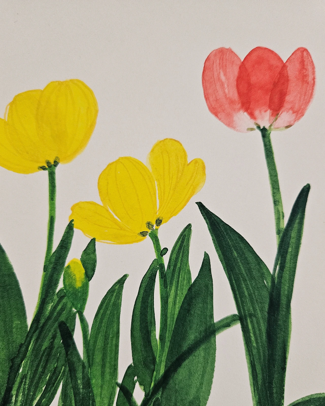 주말에는 엄마 집에 가보려 했는데, 엄마 아빠가 남동생네 집들이에 간다고 해서 오히려 편히 잘 쉬었다. 하루하루 더 피어나는 튤립을 바라보며 힘을 얻었다. 보강도 하고 튤립 사진을 찍고 그림으로 그렸다.