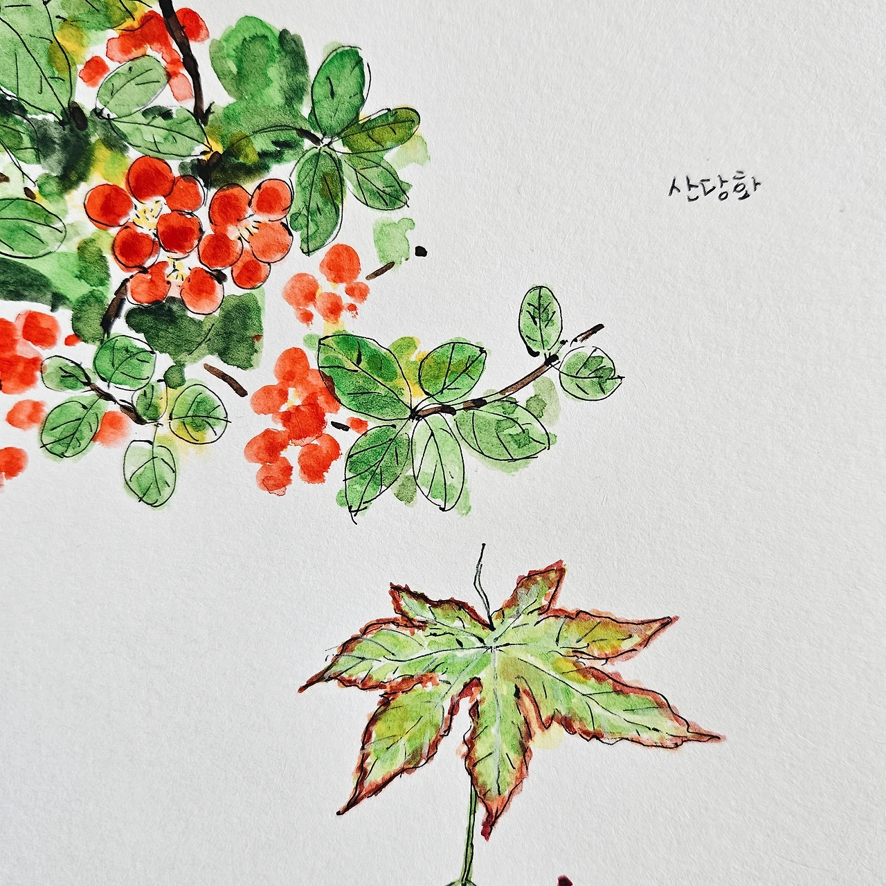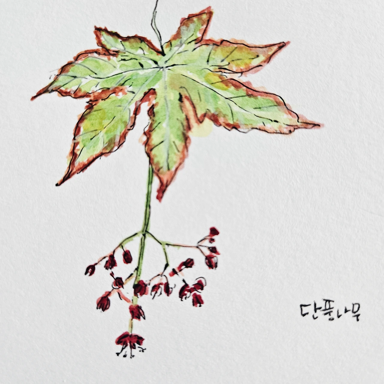 단풍 새잎과 꽃은 사랑스럽고... 그리기가 어렵다.