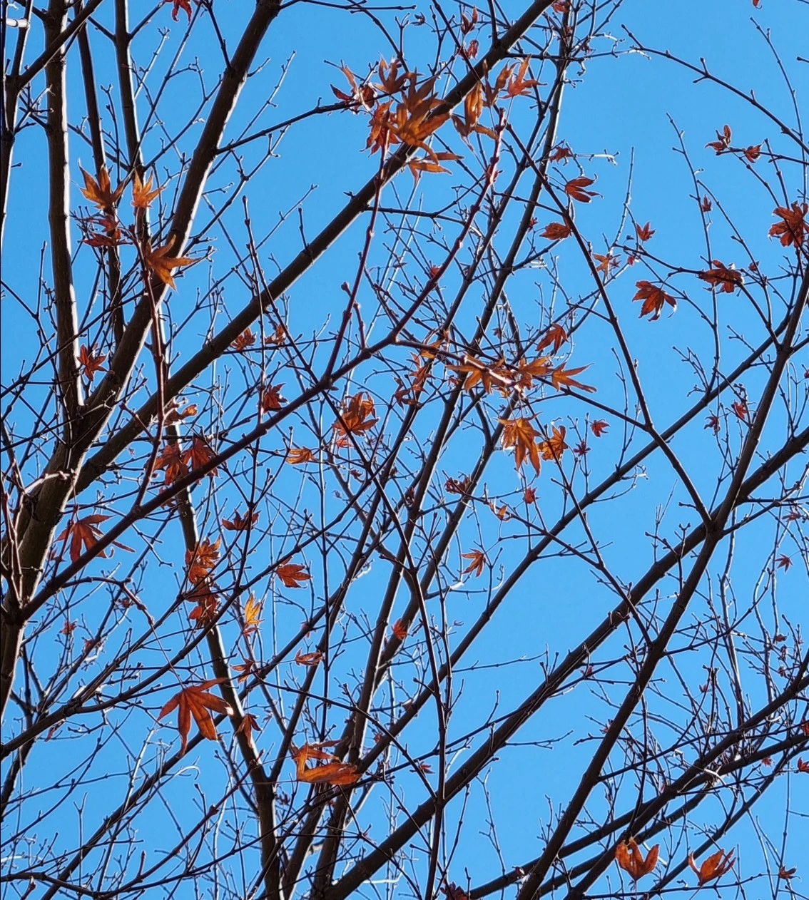 1월 13일 목요일 운전을 하면 5분 거리인 빵집이 있다. 걸어가면 30분이 넘게 걸린다. 아침에 꼭 거기 가서 소금빵을 사 오고 싶었는데 바람이 너무 차다. 빵집으로 가는 텅 빈 공단길은 바람 피할 곳이 하나 없다. 아쉬운 대로 동네에서 괜찮은 산책길을 찾아 길 건너 아파트 오솔길로 올라왔다. 하늘이 이렇게나 파랗고 예쁘다. 올려다본 소나무에는 솔방울이 많다. 솔방울이 열린 소나무 가지들이 야자나무처럼 보인다. 나무 위에 앉은 새 사진을 몇 장 찍는다. 구글 이미지를 찾아 직박구리라는 이름을 알아냈다. 직박구리가 소리를 냈다. 잠시 후 멀리서 대답하는 듯한 소리가 났다. 녹음 버튼을 눌렀을 때 새는 푸르르 날아가버렸다. 활엽수의 얇은 가지들은 가여울 정도로 가녀리다. 멀리서 보면 엉킨 머리카락처럼 보이지만 가지마다 줄기마다 모두 나무 모양이다. 네모반듯하게 다듬어놓은 영산홍 무리에 뾰족뾰족 새 줄기들이 길게 자라났다. 잘린 부분이 흙바닥인 듯, 나무 꼭대기에서 새 나무들이 자라난다.