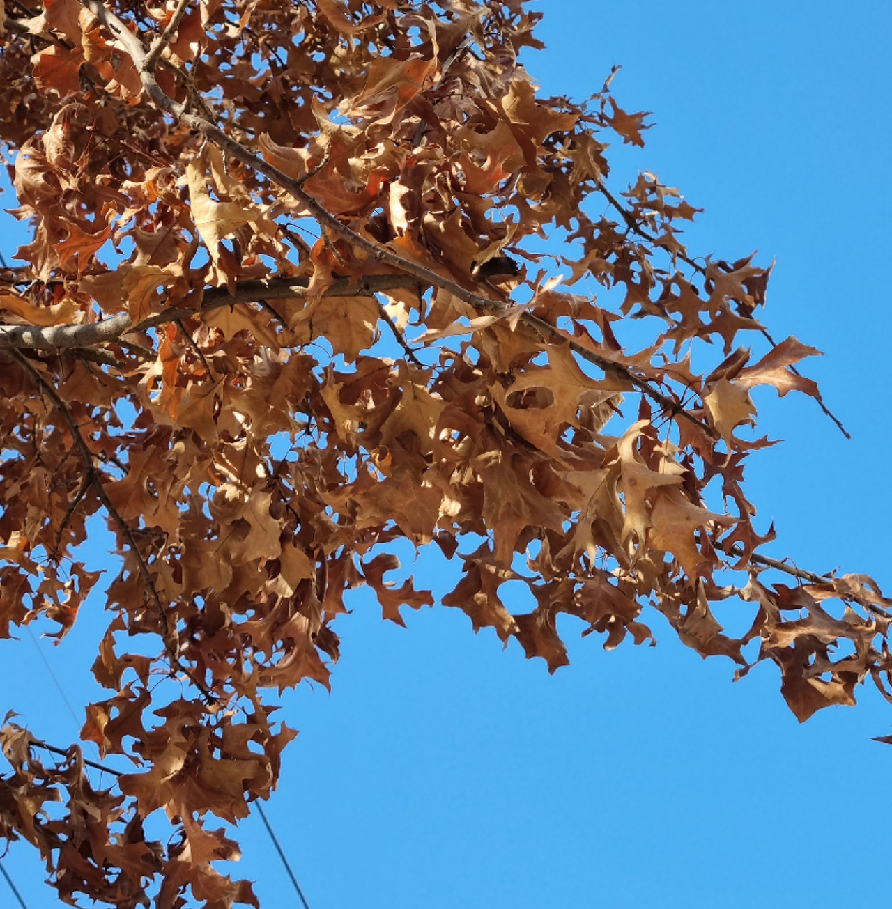 12월 22일 수요일 오후 3시 화창하다. 아침에는 미세먼지로 뿌연 하늘이 아쉬웠는데 오후 하늘이 새파랗다. 집 앞 오르막길 가로수인 왕참나무의 무성한 갈색 이파리 위로 새파란 하늘이 보여 기분 좋게 찰칵. 낮 기온은 무려 12도. 음지는 쌀쌀하지만 햇살 아래는 따뜻하다. 12월 하순이 이렇게 따스했던 적이 있었던가 싶다.