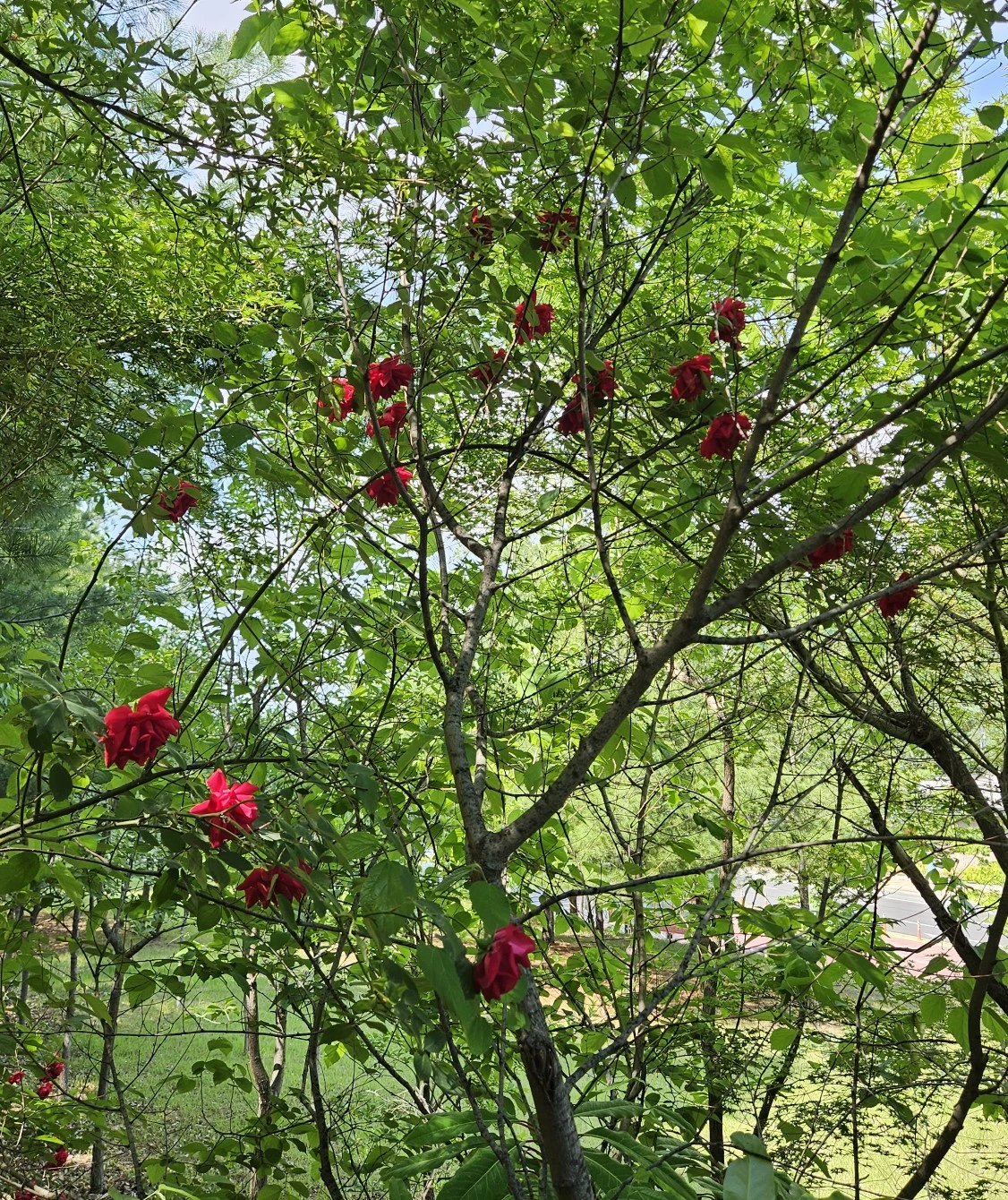 아주 작지만 내가 들여다볼 숲은 충분하다. 이름을 모르고도 이렇게 반가운 초록과 연두가 있으니까. 그리고 온갖 장소에 장미가 피어난다. 담벼락에 붙어 심어둔 장미 줄기가 나무 쪽으로 마구 뻗어나가는 모습이 좋았다.