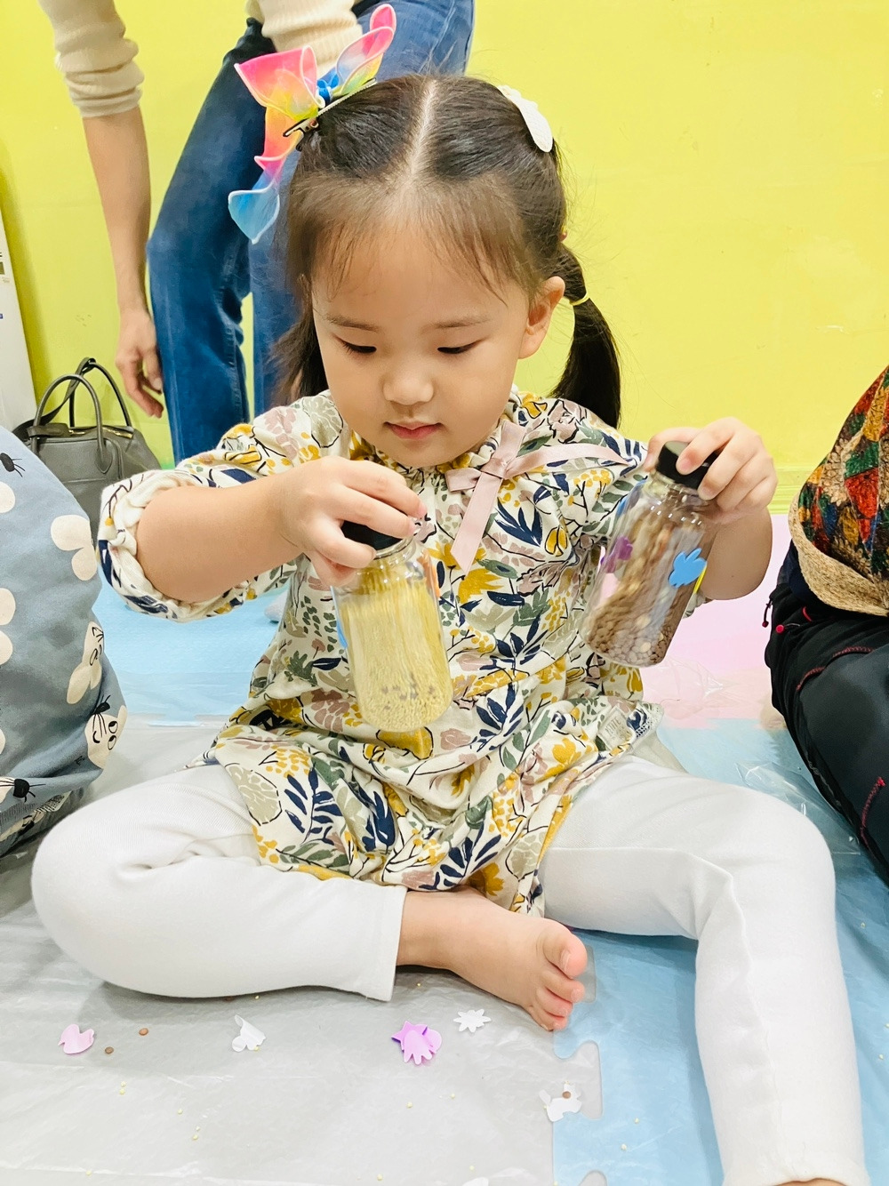 (좌-일본으로 수학여행간 첫째, 오겡끼 데스까?~, 우-학부모 참여수업에서 콩으로 만든 마라카스(?)을 흔들고 있는 막둥이)