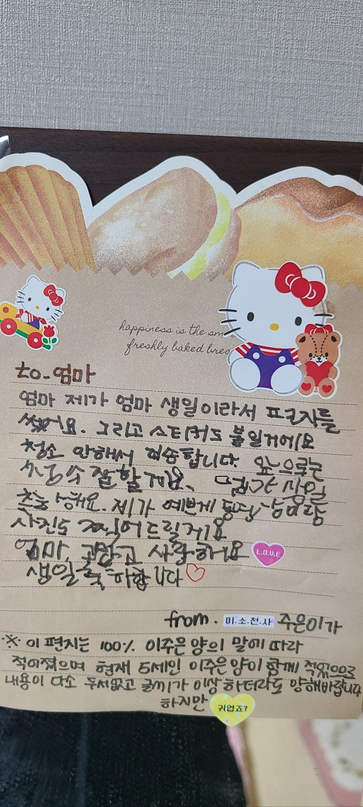 (막둥이가 엄마의 생일을 맞아 엄마에게 쓴(?) 편지)