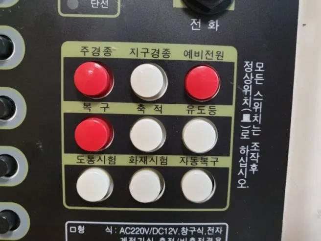 (화재 수신기의 주경종과 지구경종 스위치)