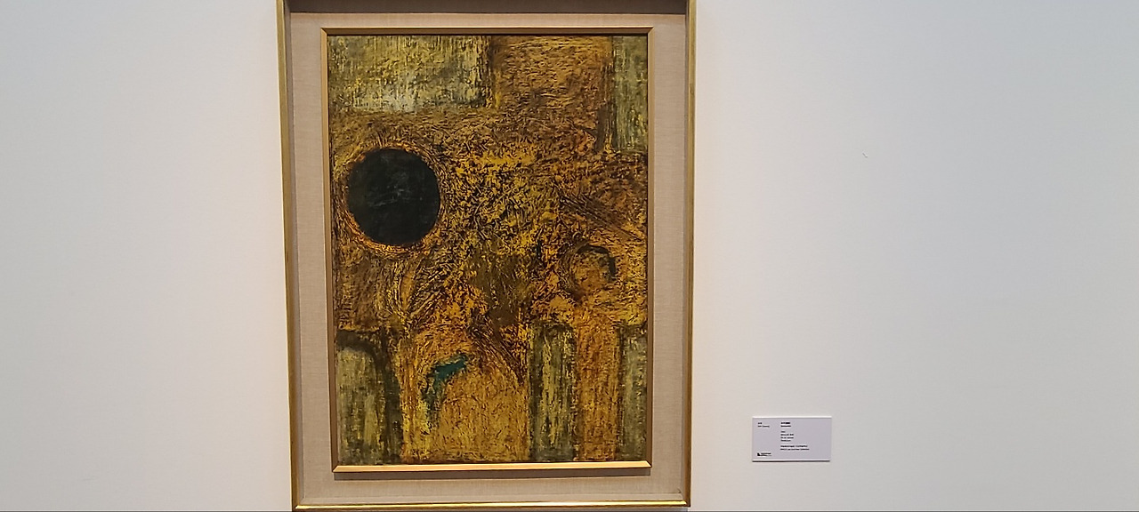 어쨌든 다른 추상화들과 마찬가지로 슥~보고 지나치려는데-이건희 컬렉션에는 7~80년대의 추상화가 많았는데 어릴 때부터 느낀 거지만 대가들의 추상화 작품은 자세한 설명이 없이는 일반인들이 이해하기가 쉽지 않다.- 온통 노랗게 칠한 그림에서 검은 공 하나가 '딱' 보였다. 마치 개기일식을 맞은 태양 같기도 하고... 그리고 그 공인지, 태양인지를 보고 있는 맞은편의 실루엣, 초등학생쯤 되는 남자아이 같다. 그 남자아이는 공인지 태양인지를 보고 기쁜 듯 두 팔을 벌리고 있다. -물론 얼굴 표정은 자세히 묘사되어 있지 않기 때문에 순전히 나의 상상이다.- 그래, 이게 바로 조우구나~ 내 입에서는 낮은 탄식이 새어 나왔다. 새로운 세계를 만나는 순간, 아이로 말하면 공을 만나는 순간, 그 순간이 바로 조우인 것이다. 우리가 가장 만나고 싶은 존재, 새로운 세계로 빠져드는 그 순간 우리는 최고의 희열의 맛본다. 그림은 온통 덧칠하고 있는 노란색은 그 희열의 순간을 나타내는 색인 것이다. 그리고 작가는 이 작품을 '조우'라고 이름 붙였다. 난 다시 무릎을 '탁'쳤다. -물론 실제로 친 건 아니다~^^;;- 새로운 세계와 조우하는 그 짧은 순간을 잡아내는 타이밍이 이렇게도 절묘할 수 있다니... -그런 의미에서 이렇게 훌륭한 작품을 남기신 작가님의 성함을 알아오지 못한 것은 그날 나의 최대의 실수가 아닐 수 없다.~ㅠㅠ- 자신이 기대했던 순간, 만나고 싶었던 존재와의 만남이 올올이 붓끝의 터치로 말미암아 하나하나의 에너지로 전해지고 있었다.