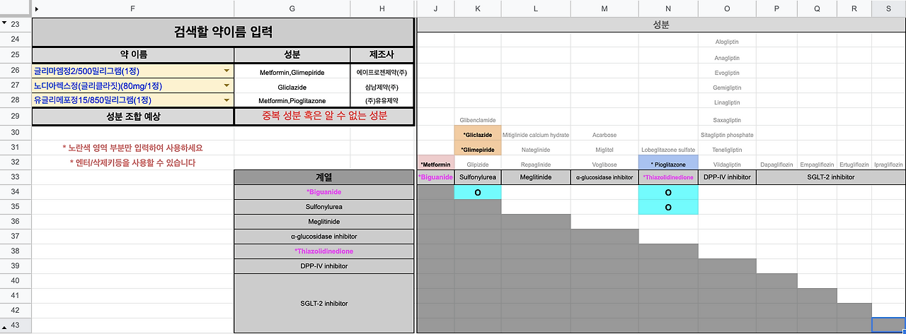 원래 글의 제목이 "구글시트 어디까지 써봤니 : 당뇨 약제 검색 #1" 로 저장되어 있었지만 뒤에 #1을 빼고 간단한 소개만 하는 점을 양해바랍니다.