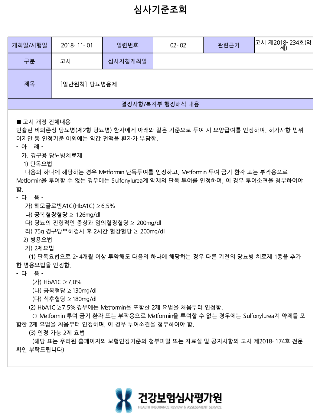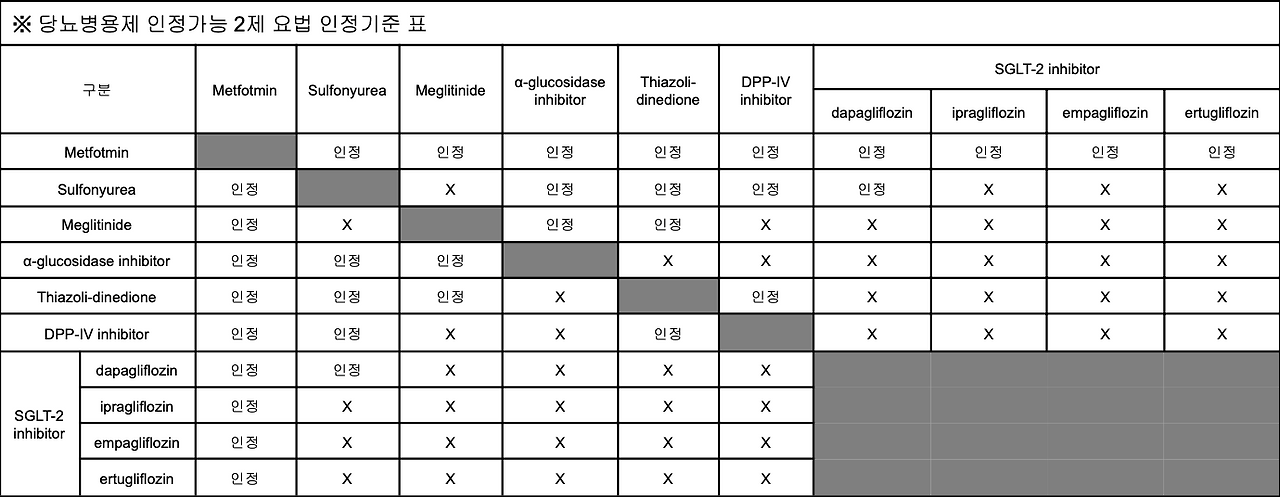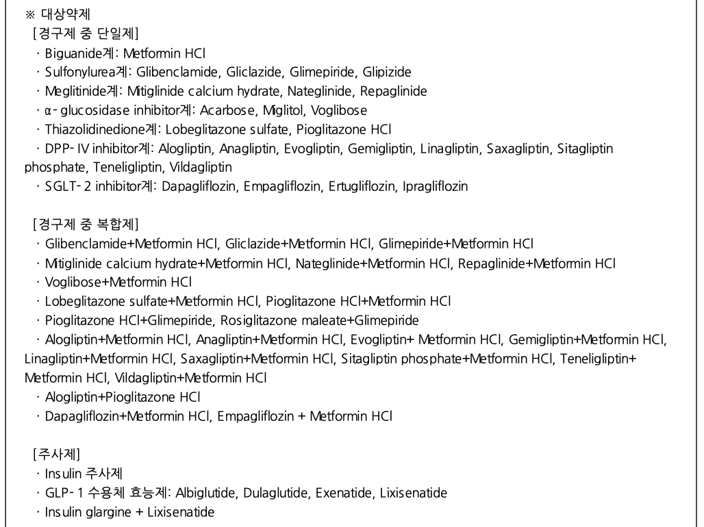 당뇨 약제 조합의 보험 적용 가능 여부를 쉽게 알려주는 기능을 만들어주세요