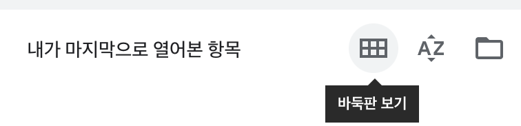 만약 글자만 보이는 "목록 보기" 상태라면 "바둑판 보기" 아이콘을 눌러서 위와 같이 시트 화면을 보는 형태로 변경이 가능합니다.