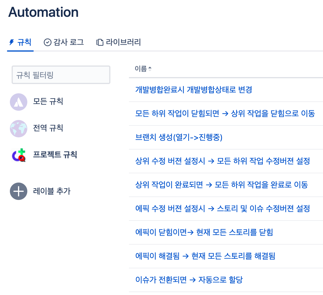 Jira 프로젝트 설정의 Automation 부분은 운영하면서 수정이 되어야 할 부분들도 있습니다. (made by Jake)