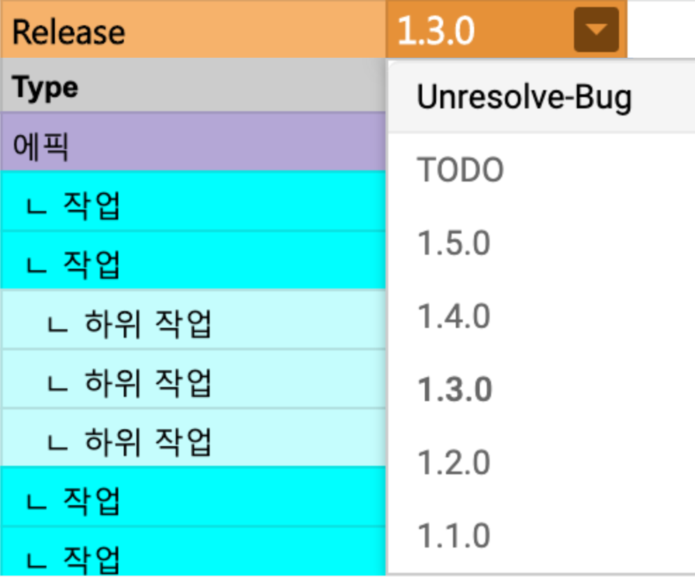 - 작업과 다른 릴리즈인 하위 작업이 있을 수 있다. 해당 하위작업은 보이지 않도록 한다.
