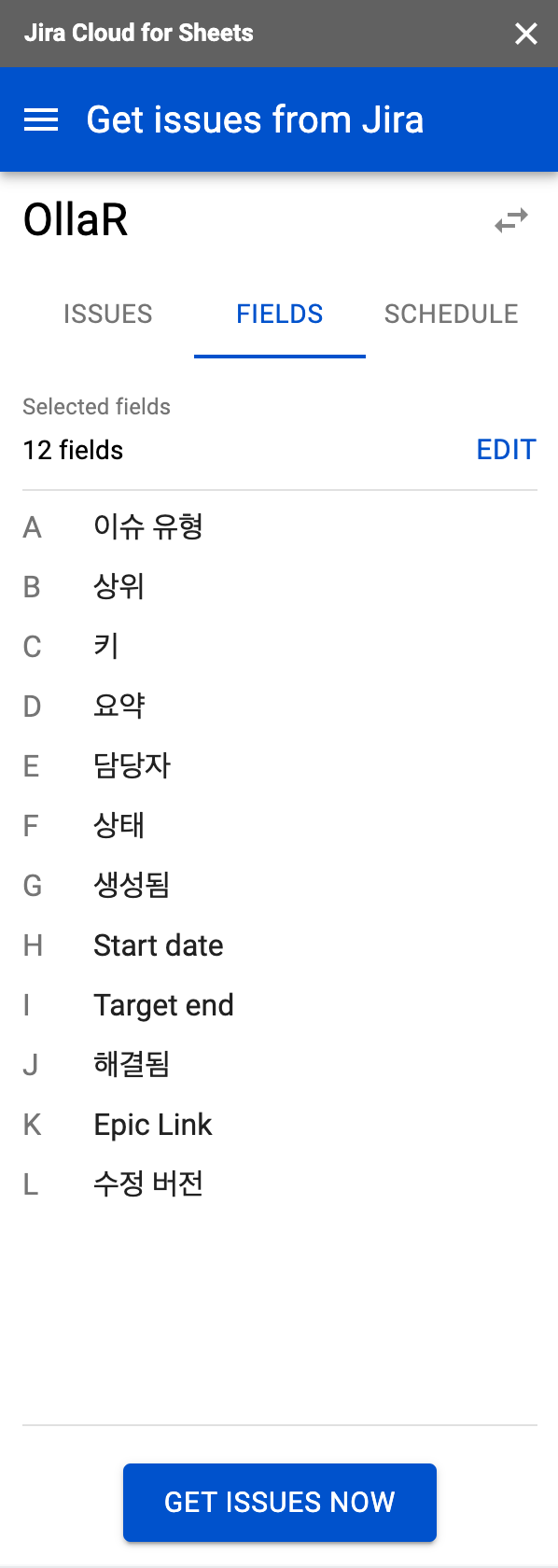 사실 이미 Jira Cloud for Sheets로 연결을 해서 사용하고 있었지만, 최근에 구글시트 기능이 업데이트가 된 것 때문인지 자주 연결 정보가 사라지는 경험이 있어서, 과거의 코드를 꺼내서 적용을 해보려고 했다가 발견한 내용이기는 합니다.