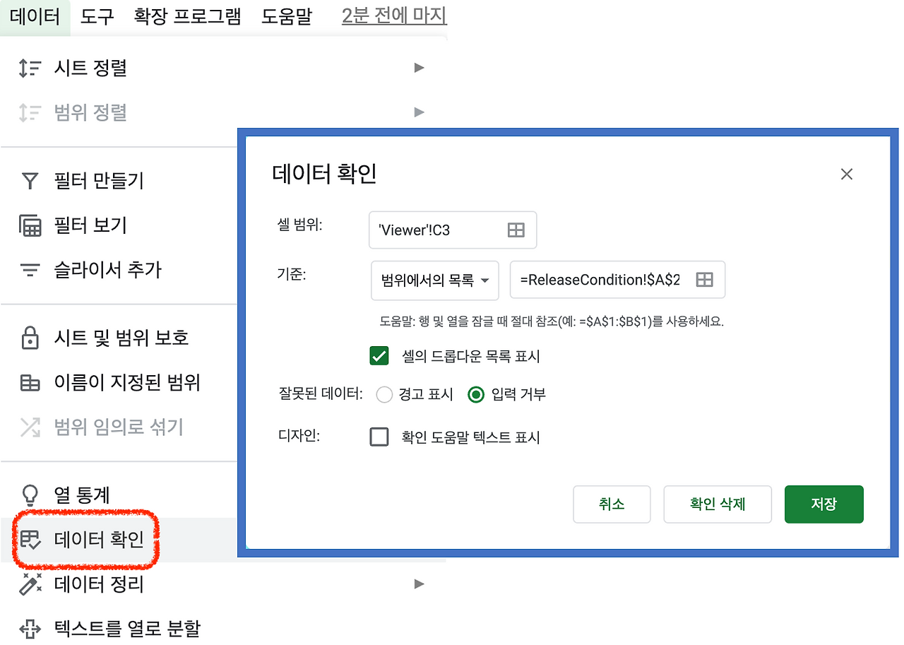 Viewer의 Release 정보가 보여지는 셀에서 "데이터 > 데이터 확인"을 통해 활용합니다.