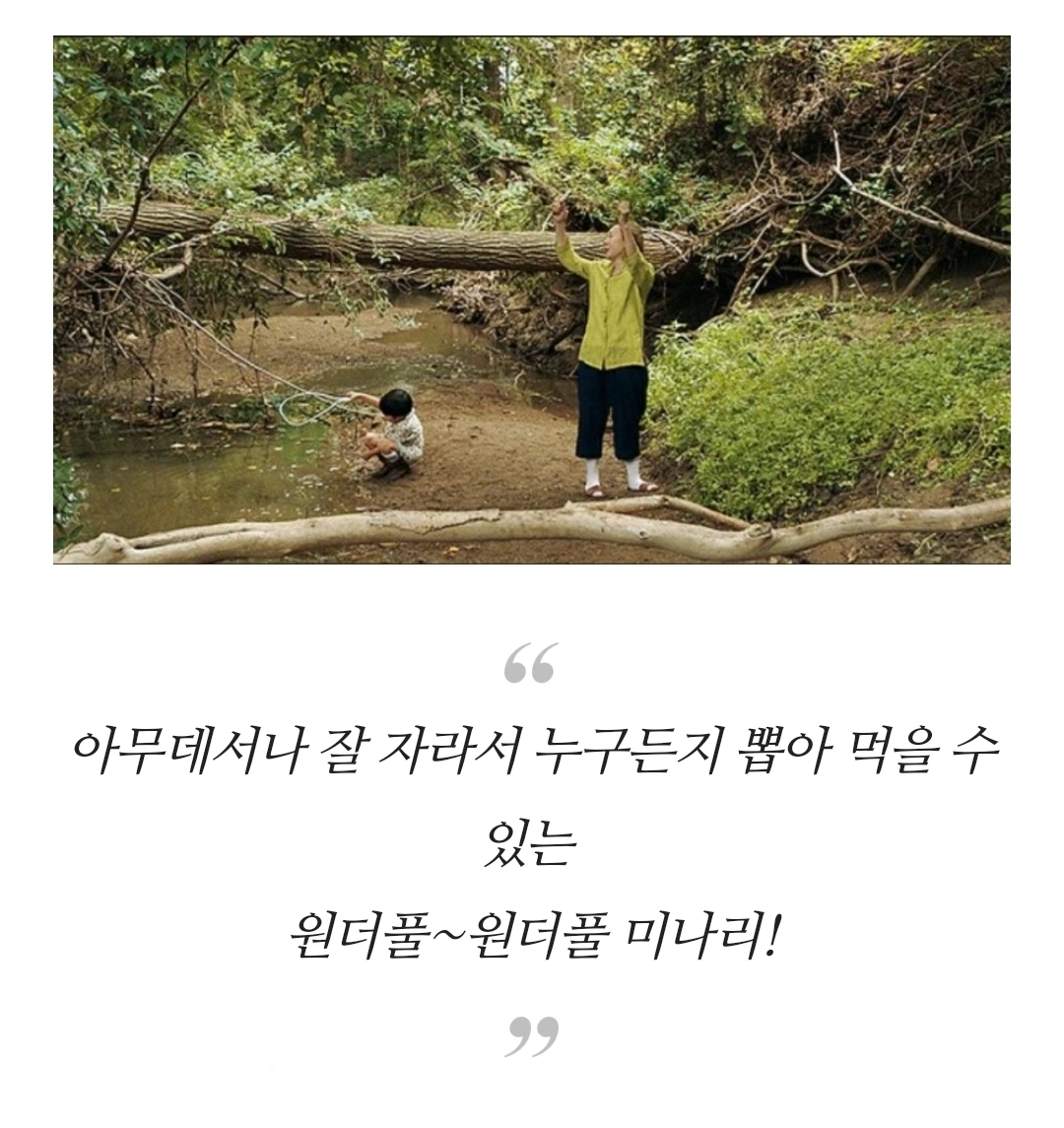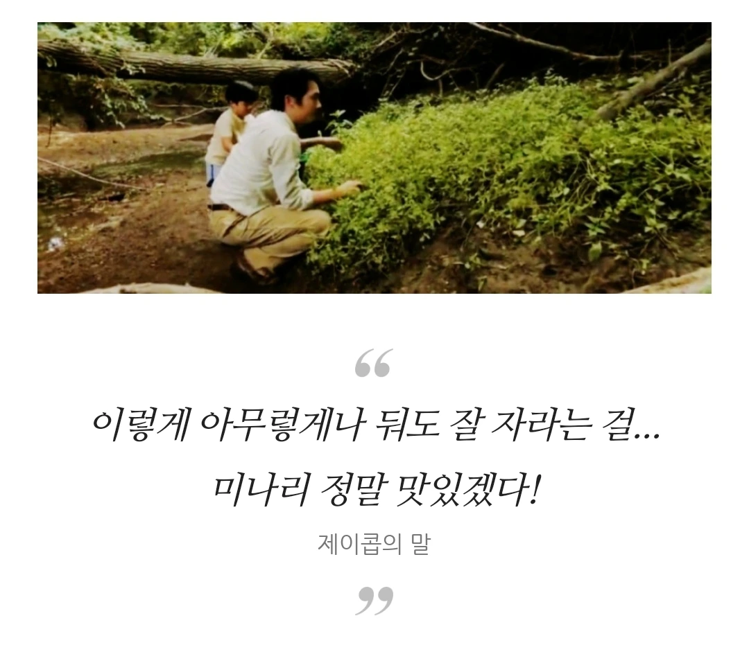 순자가 심어 놓은 미나리로 새로운 시작을 하려는 제이콥이 무성한 미나리를 보며 말한다. 이렇게 아무렇게나 둬도 잘 자라는 걸...