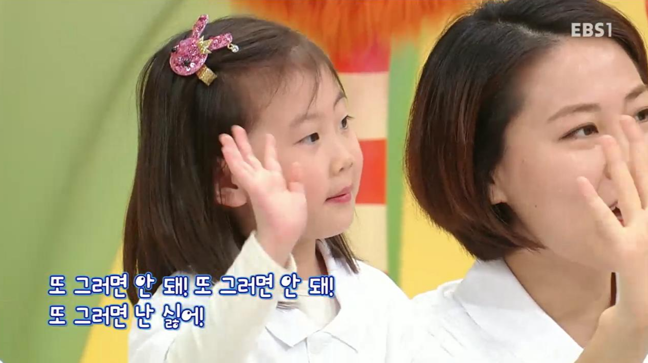 사전 공지된 노래와 춤을 연습해온 터라 아이들 모두 노래와 율동을 잘 따라 했다. 그날의 주제곡은 “장난감을 갖고 놀다가~”라는 가사로 시작되는 '그냥 두고 나갔더니'였다. 결국 장난감 정리정돈을 잘하자는 얘기인 건데 중간중간 노래와 콩트를 섞어 아이들 눈높이에 맞게 적절하게 이해를 시켜주는 것 같았다. 마침 우리 딸아이도 맨날 놀고 나서 장난감을 치우라는 잔소리를 듣고 있던 터라 시의적절한 주제기도 했다. 그러고 보면 그 맘때쯤의 아이들이 다 그런 것 같기도 하고.