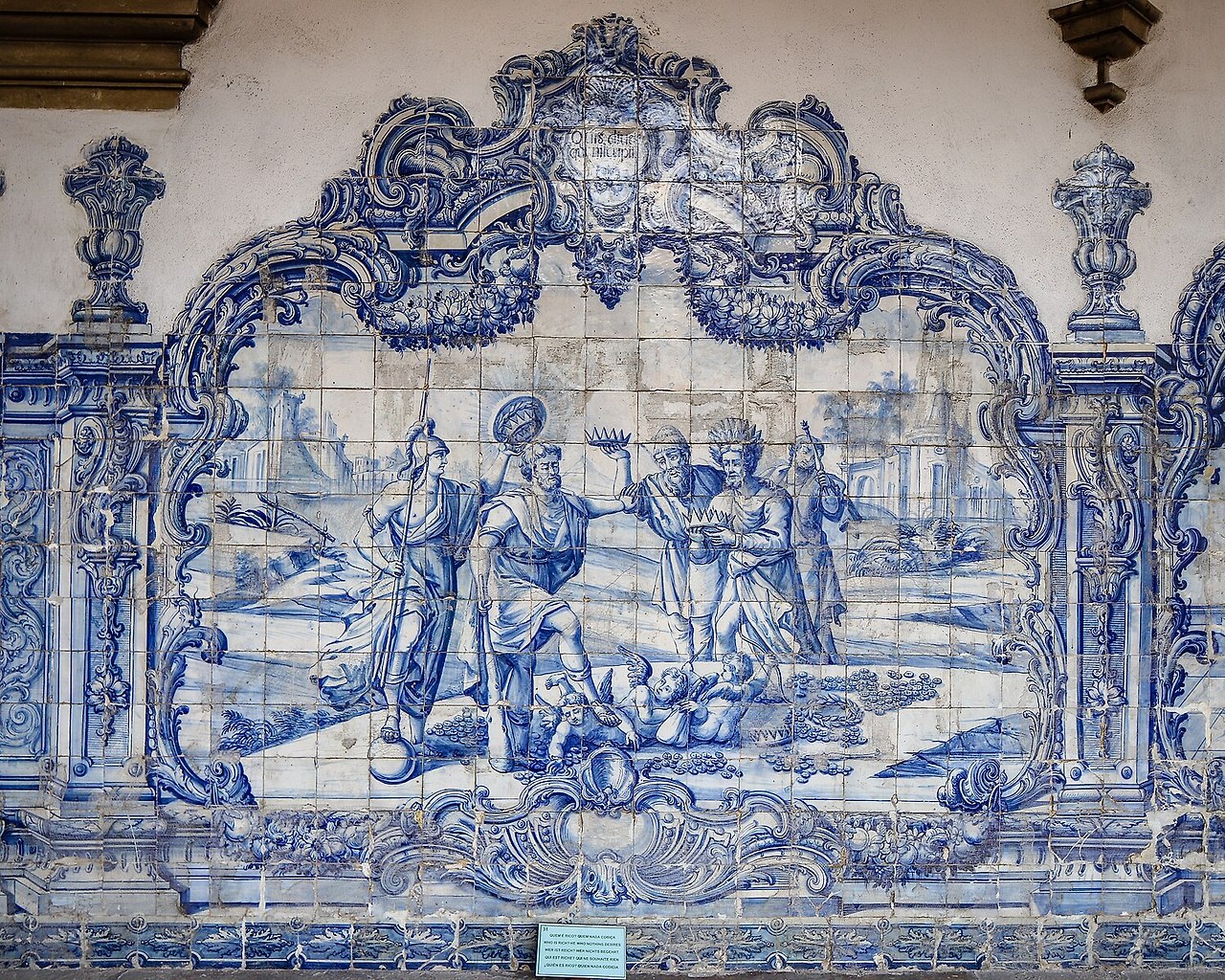 여기 포르투갈 포르투의 상 벤투 역(San Bento)의 푸른 아줄레주(Azulejos)의 상징이고,