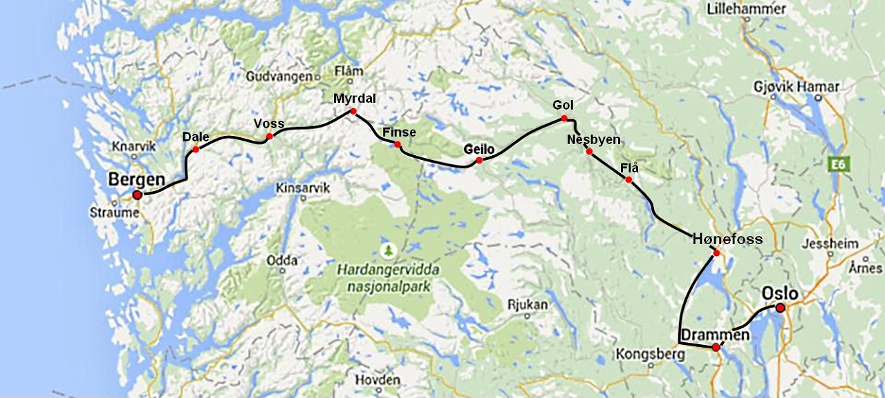 <베르겐스바넨(Bergansbanen) 노선지도>