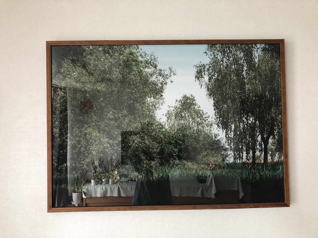 정말 신기하게도 이 그림을 볼 때마다 비가 오면 비 맞는 나뭇잎 소리가 들리는 것 같고, 해가 좋은 날엔 집의 한편에 시원한 그늘을 만들어주는 착각이 든다. 내 마음에 쏙 든 탓도 있겠지만 실제 그림 액자 하나가 주는 집에 대한 장악력은 꽤 컸고 그걸 매일 바라보는 나에게도 긍정적인 에너지를 마구 주었다.
