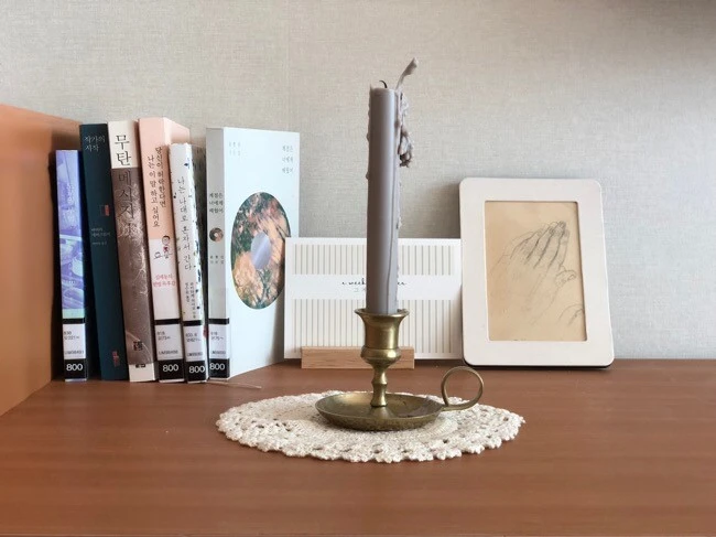 실로 촛대 모양은 다양하다. 나무, 유리, 쇠 등 재질과 크기에 따라 각기 다른 분위기를 풍기고 가격도 1만 원대부터 몇십만 원까지 폭이 크다. 이 중에서 내 마음에 딱 드는, 마치 초록지붕 집을 가져온 듯한 느낌이 나는 것을 찾기가 매우 힘들다. 이 촛대를 고르기까지 꼬박 한 달이 걸렸고, 촛대 지름이 몇 cm냐를 두고 며칠간 종이에 그림을 그리며 분위기를 짐작해 보았다. 지금 생각하면 왜 그렇게 촛대에 집착했는지 모르겠지만, 어쨌든 지금 그 촛대는 나의 밤 위로가 필요할 때 마음껏 이용된다.