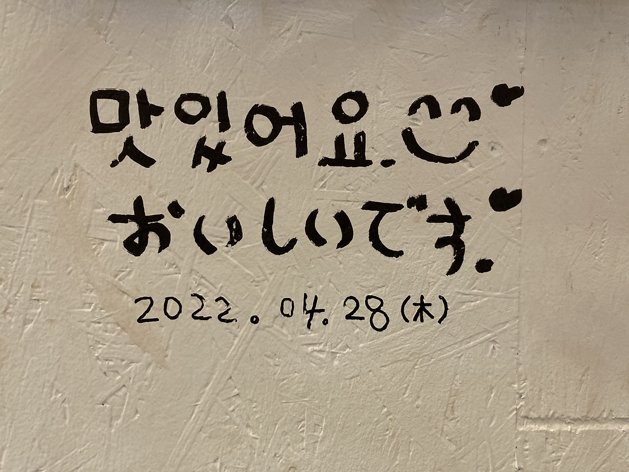 어제 보니까 손님들이 벽면에다가 이런저런 그림이랑 메모를 한 게 보였다.