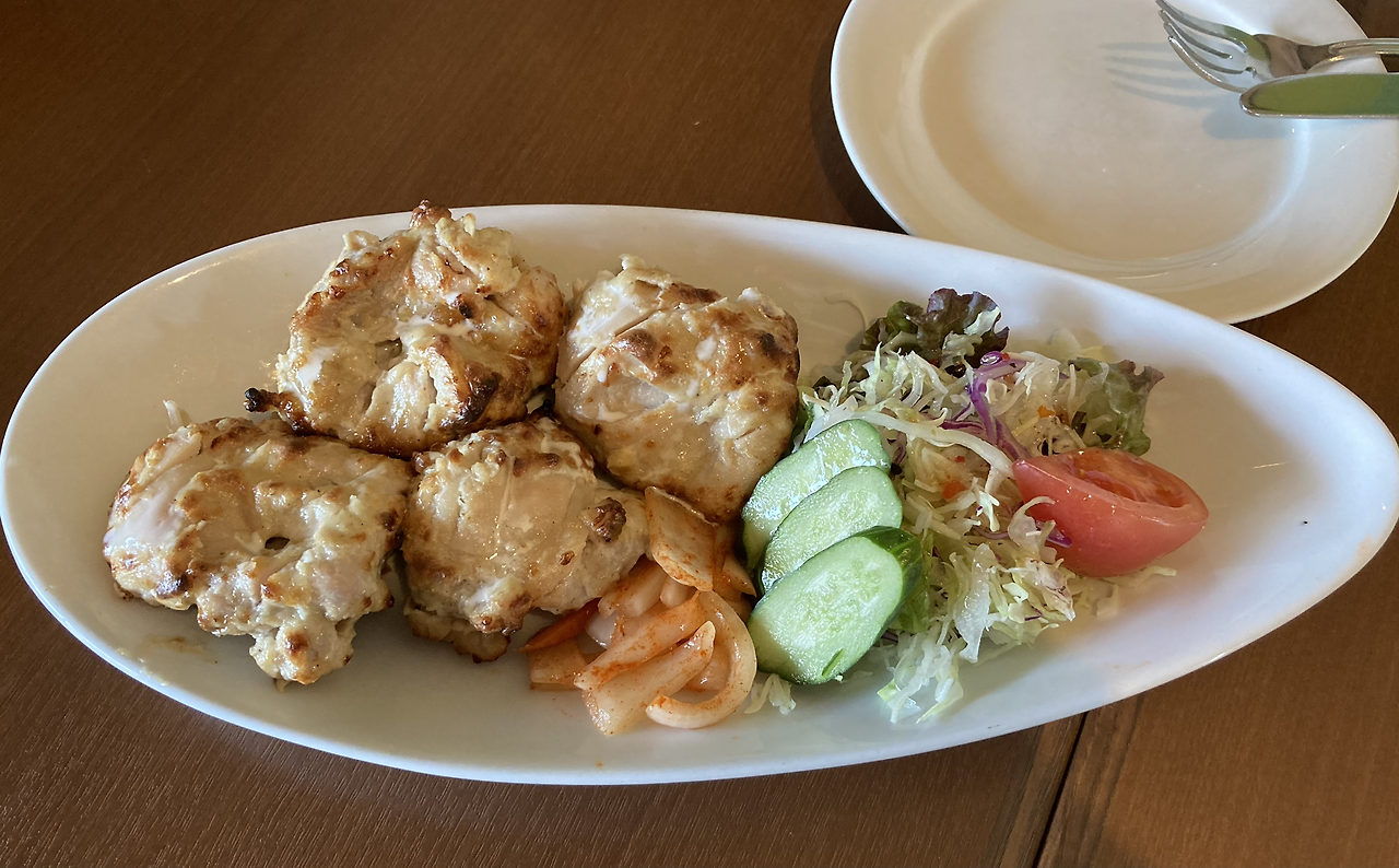 라씨랑 닭고기 요리랑 카레를 시켰는데, 양해를 구하고 닭고기 음식만 사진 찍었다.