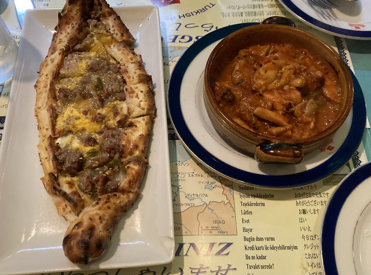 코스로 주문해서 조금씩 다양한 음식이 나왔는데 제일 맛있게 먹은 것은 터키식 피자.