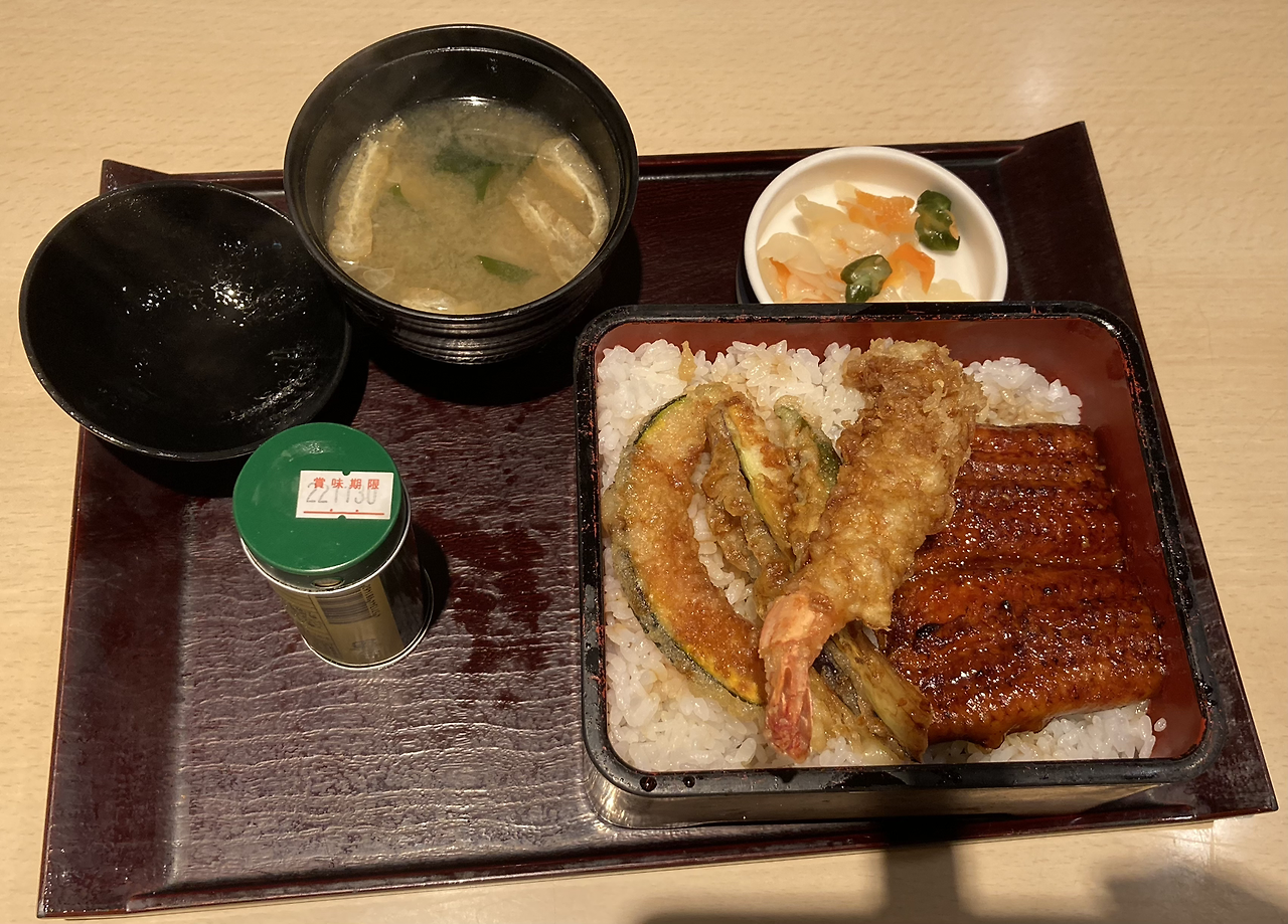 집 근처 일식 패밀리 레스토랑에 갔는데 장어덮밥 (100% 장어)과 장어 절반, 튀김 절반 있는 덮밥 2가지 중에