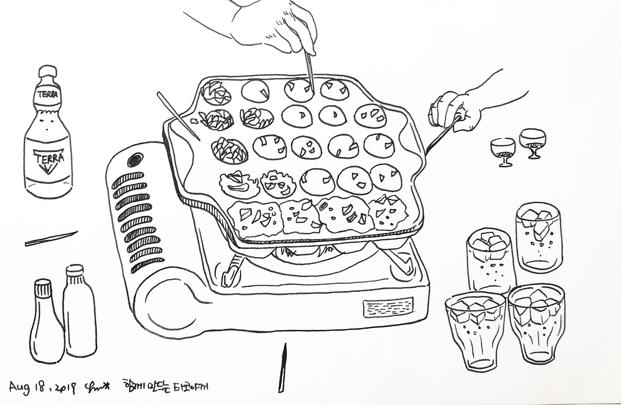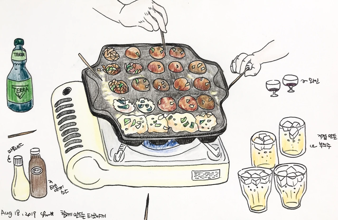 개인적으로 오래된 모임에서 몇 년 전부터 1년에 한 번 정도 타코야키를 구워서 같이 먹는 시간을 갖곤 하는데요,