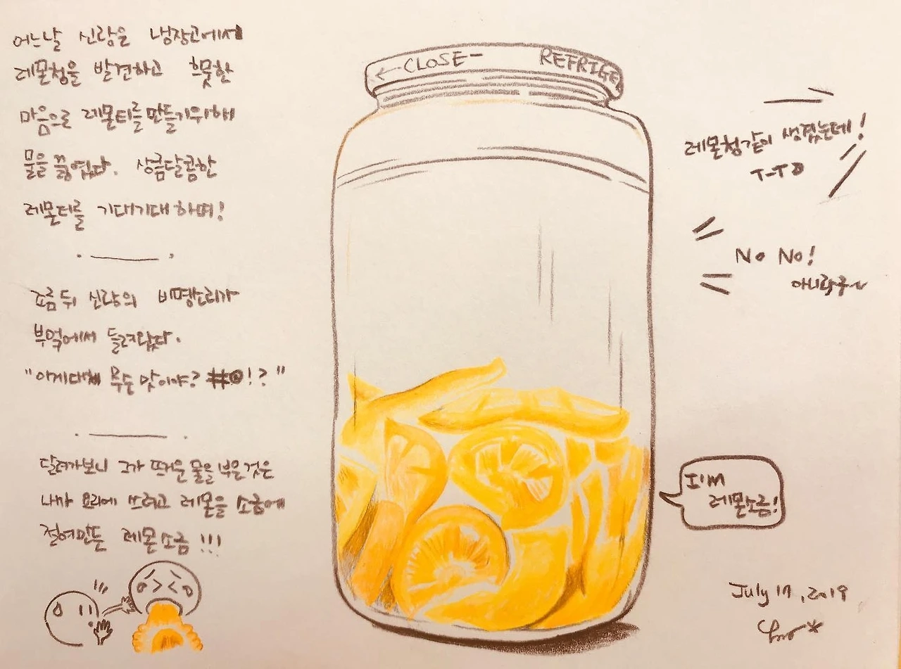 어느 날 신랑은 냉장고에서 레몬청을 발견하고,