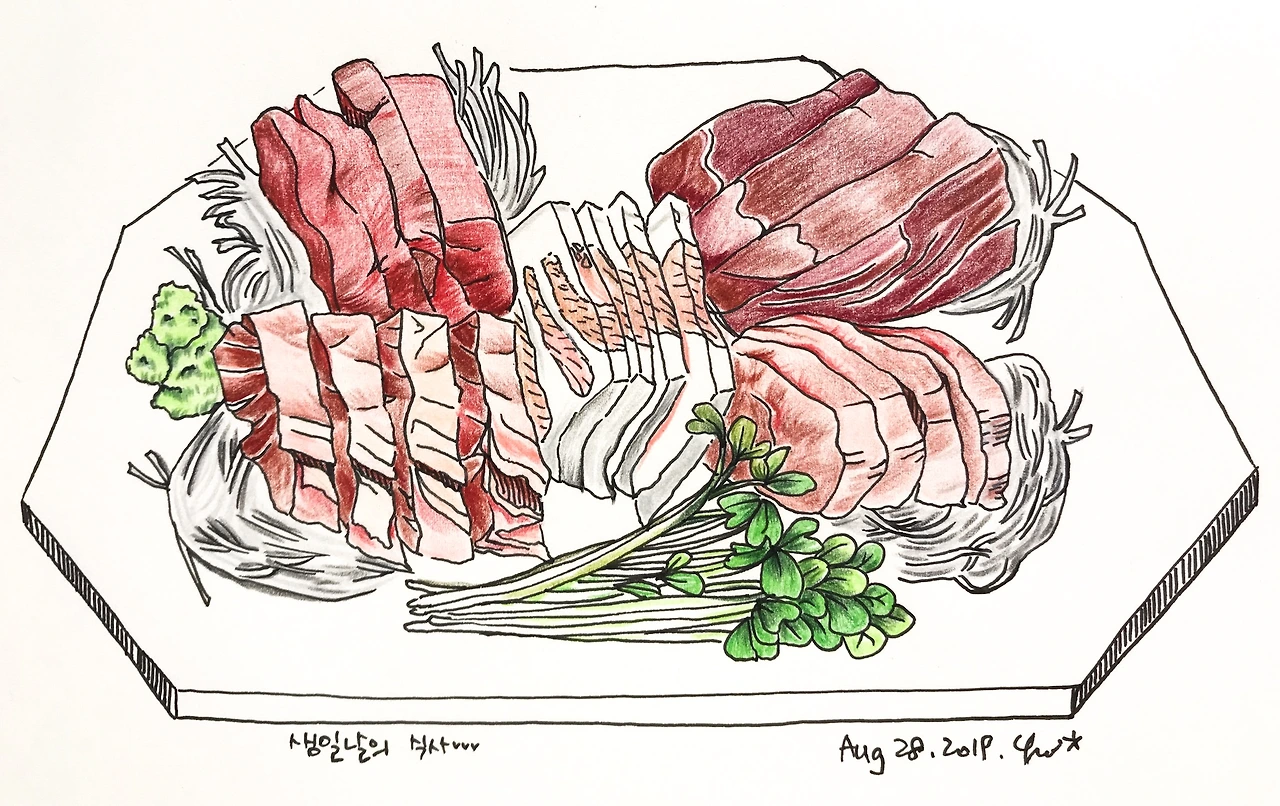 저의 생일날 휴가를 낸 신랑과 함께 참치회를 먹으러 갔습니다. 정말 오랜만이었어요. 언제 먹은 게 마지막이었는지 기억도 안 나네요...@@;