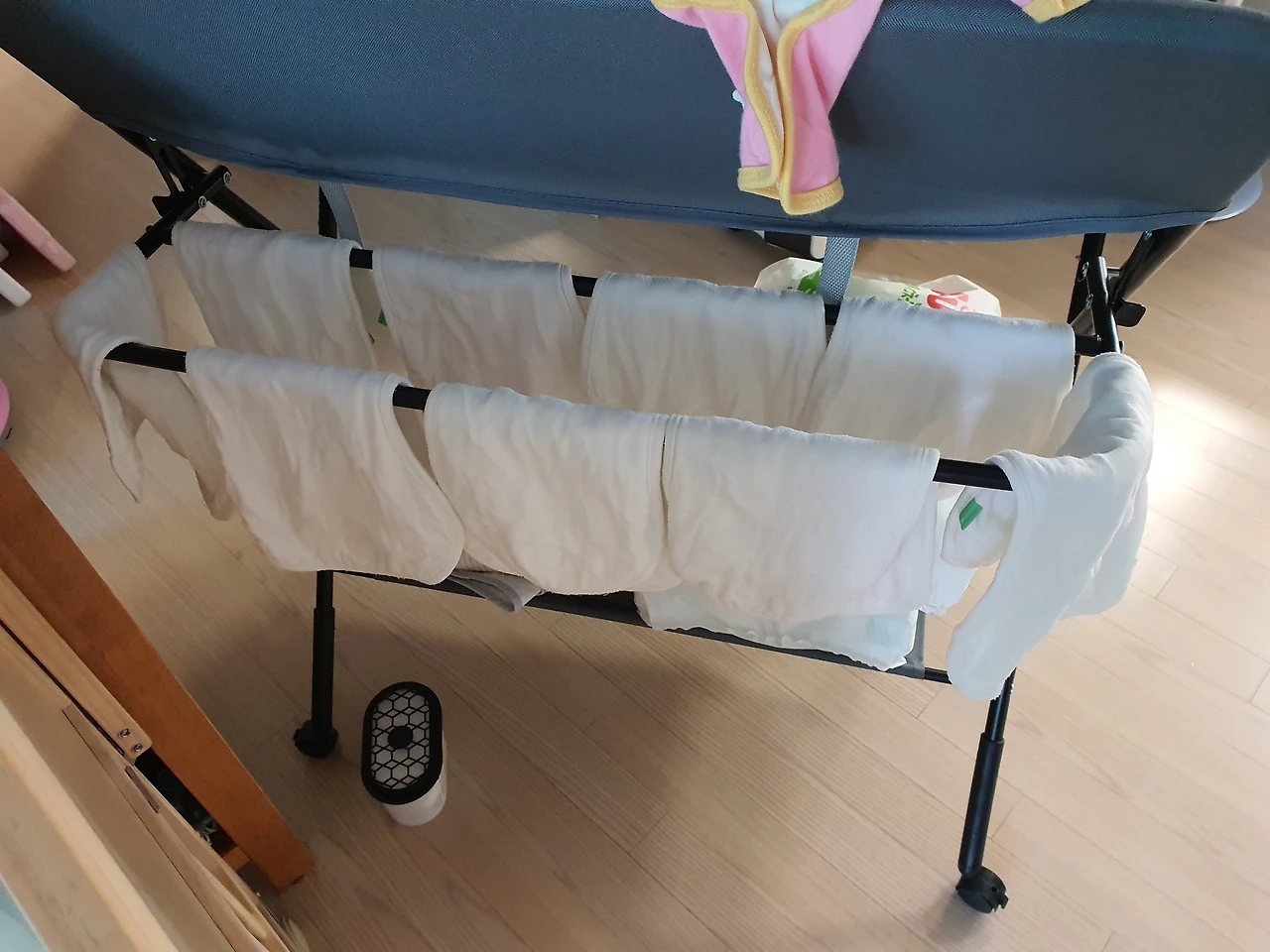 천 기저귀는 일단 ‘무루 땅콩’ 기저귀를 사용했는데 도톰해서 소변을 잘 흡수했고 짧은 땅콩 모양이라서 빨래 후 개기 편했다.