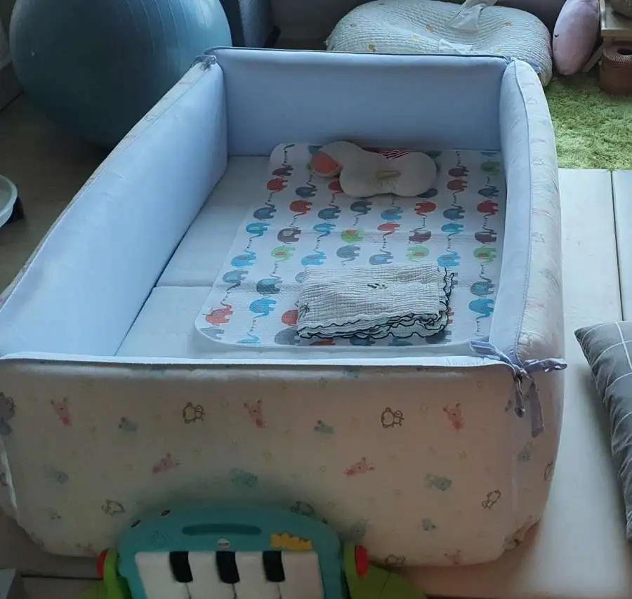 아기가 다치면서 정신이 없어서 정리하지 못했던 집에 산더미처럼 쌓여 있는 빨래를 개고, 범퍼 침대에 커버를 씌우고 범퍼끼리 서로 연결해서 침대를 완성했다. (진작에 좀 이렇게 만들어서 침대를 옮겨줬어야 했는데...ㅜㅜ)