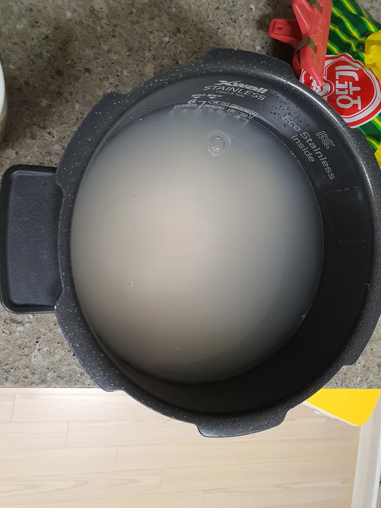 3. 나물 데칠 소량의 물 하나와 미역국 끓일 물(남편과 먹을 2인분 정도의 물로 준비) 하나, 두 개의 냄비를 끓인다.