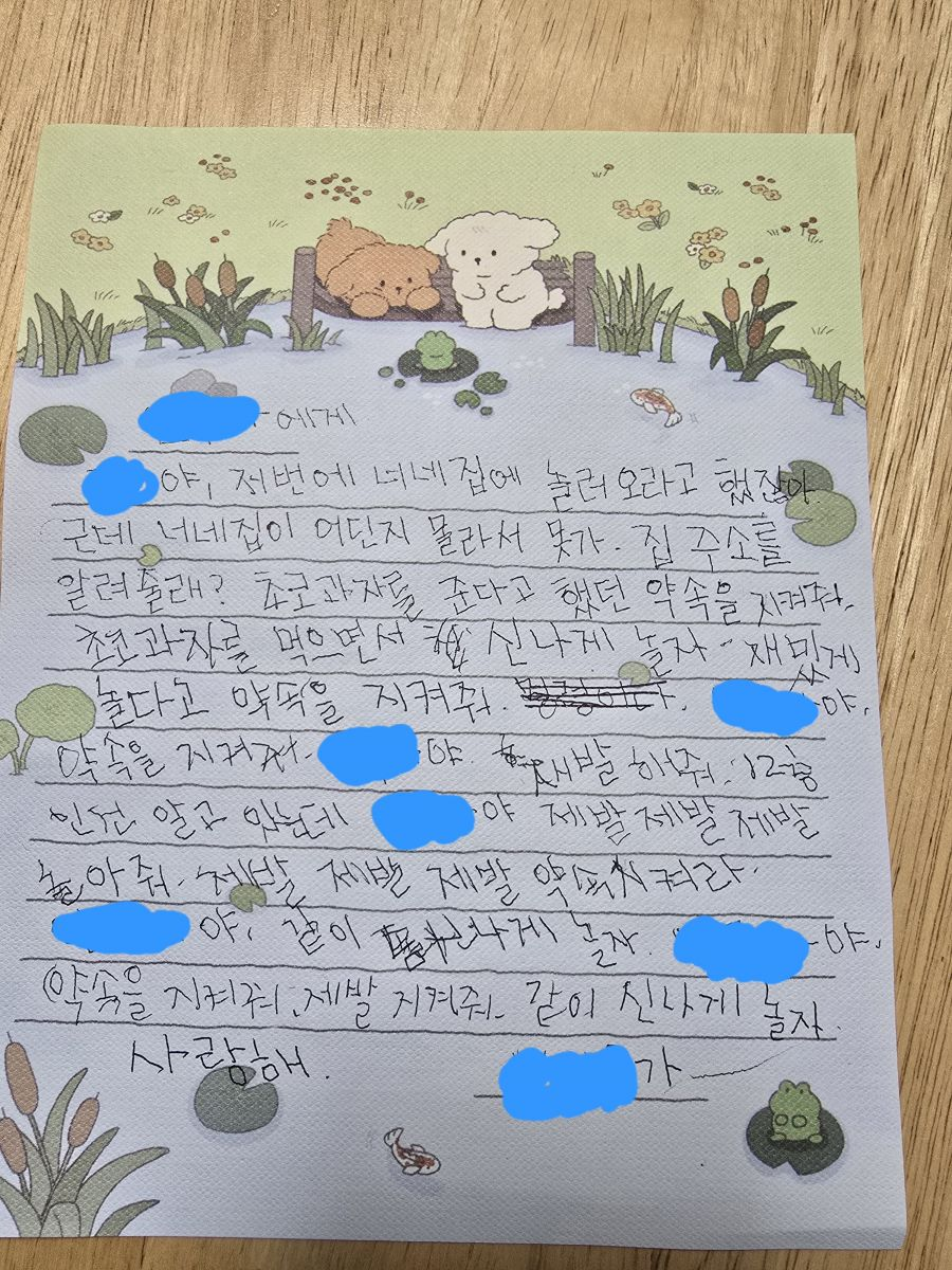 정성들인 편지에 고마웠고 아이의 마음을 이렇게까지 존중해줘서 감동받았다는 내용이었다.