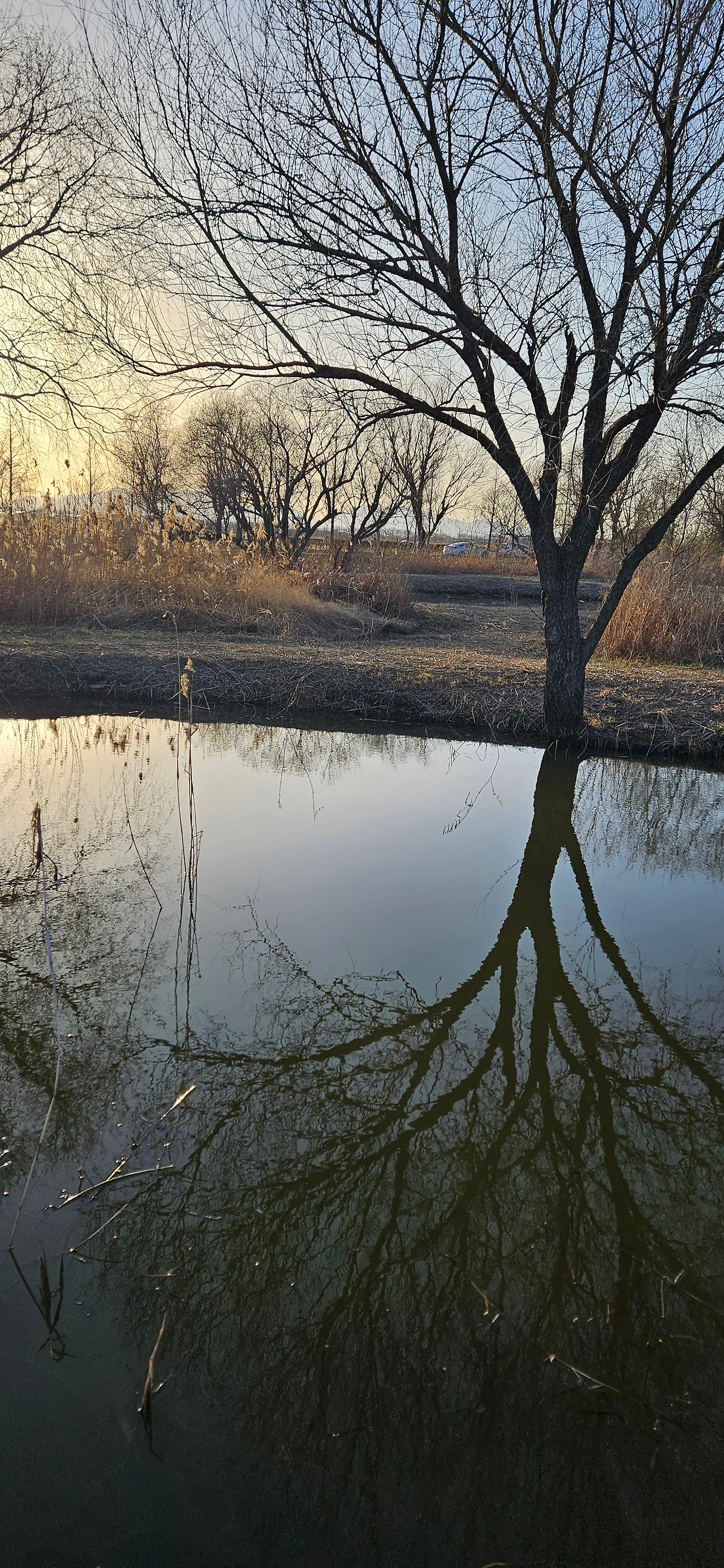 봄을 기다리며 야윈가지를 쭉 뻗는다