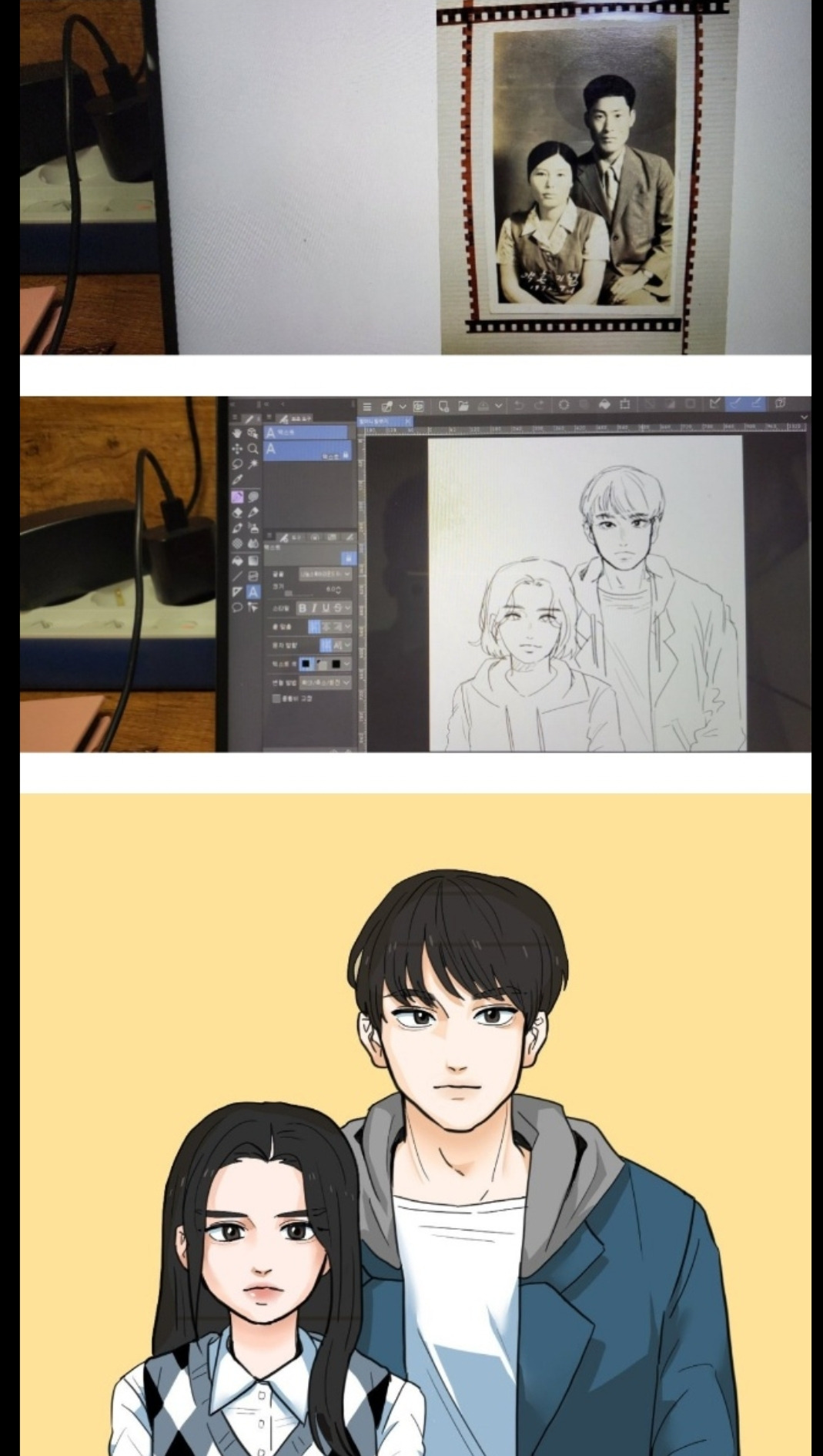 그렇게 시간이 지났다. 딸아이의 방에서 드로잉되고있는 캐릭터를 보았다. 할아버지 할머니도 청년일때가 있었겠지. 아마 요즘 태어나셨다면 이런 모습일지도...