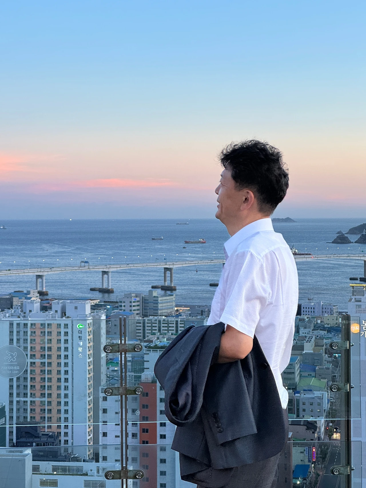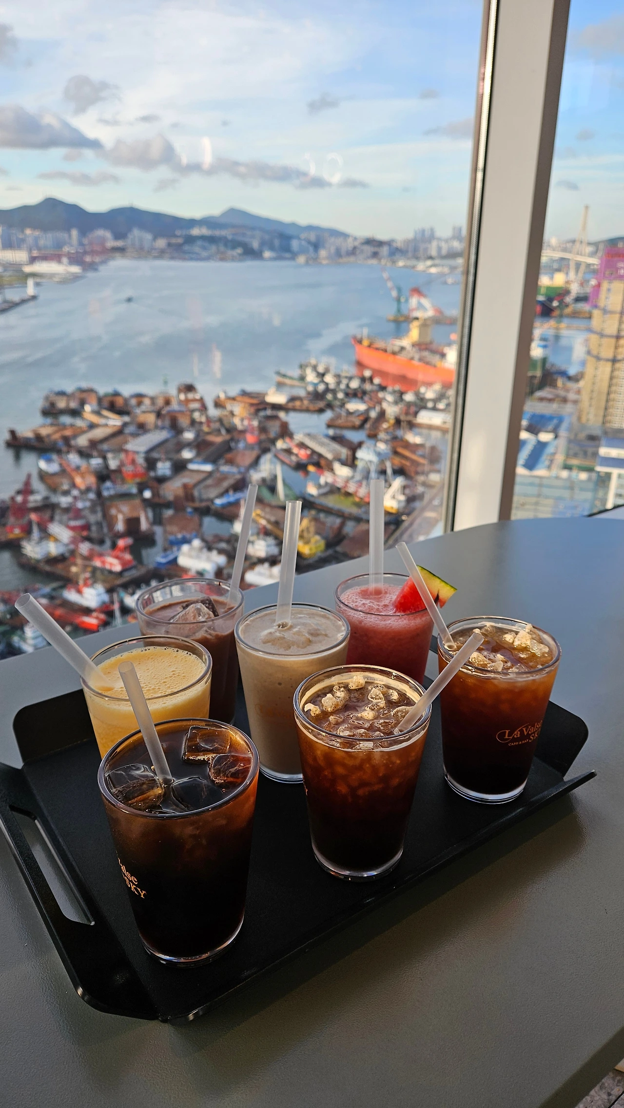 바다가 훤히 내려다 뵈는 어느 카페 창가