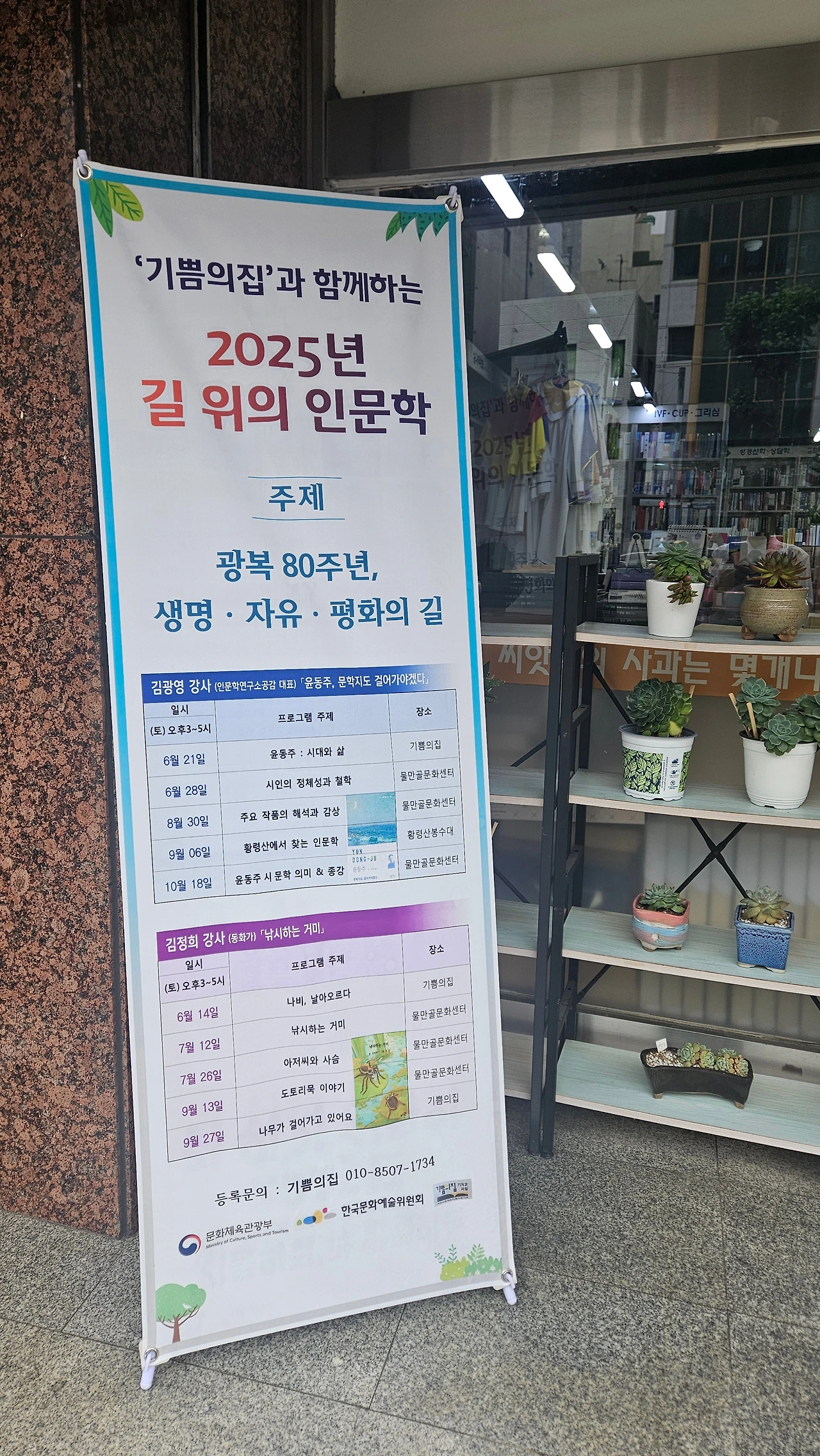 2025년 길 위의 인문학 기쁨의 집 기독서점에서 윤동주 첫 수업에 당신의 발걸음 초대하나이다. 하늘 우러러 한점 부끄럽 없이 살아가길 바라는 당신의 길과 동행하길 바라나이다~