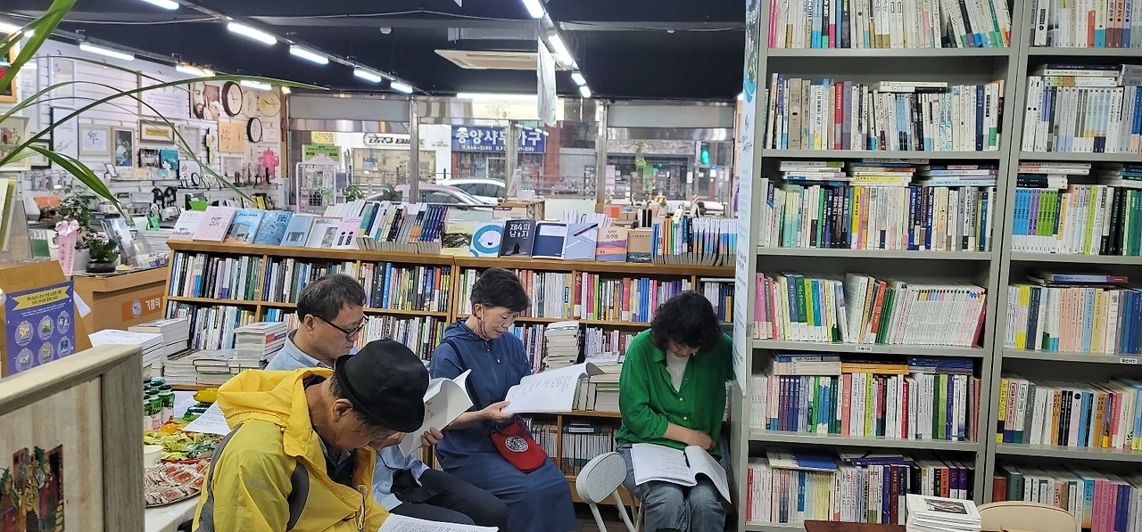 백수련 선생은 살아있는 표정과 수어로 서시의 시구를 온몸으로 풀어낸다. 윤동주 밤을 25년 전 처음 시작한 계기로 25회를 이어온 이야기를 기쁨의집 대표 김현호 책방지기의 육성으로 듣는다.
